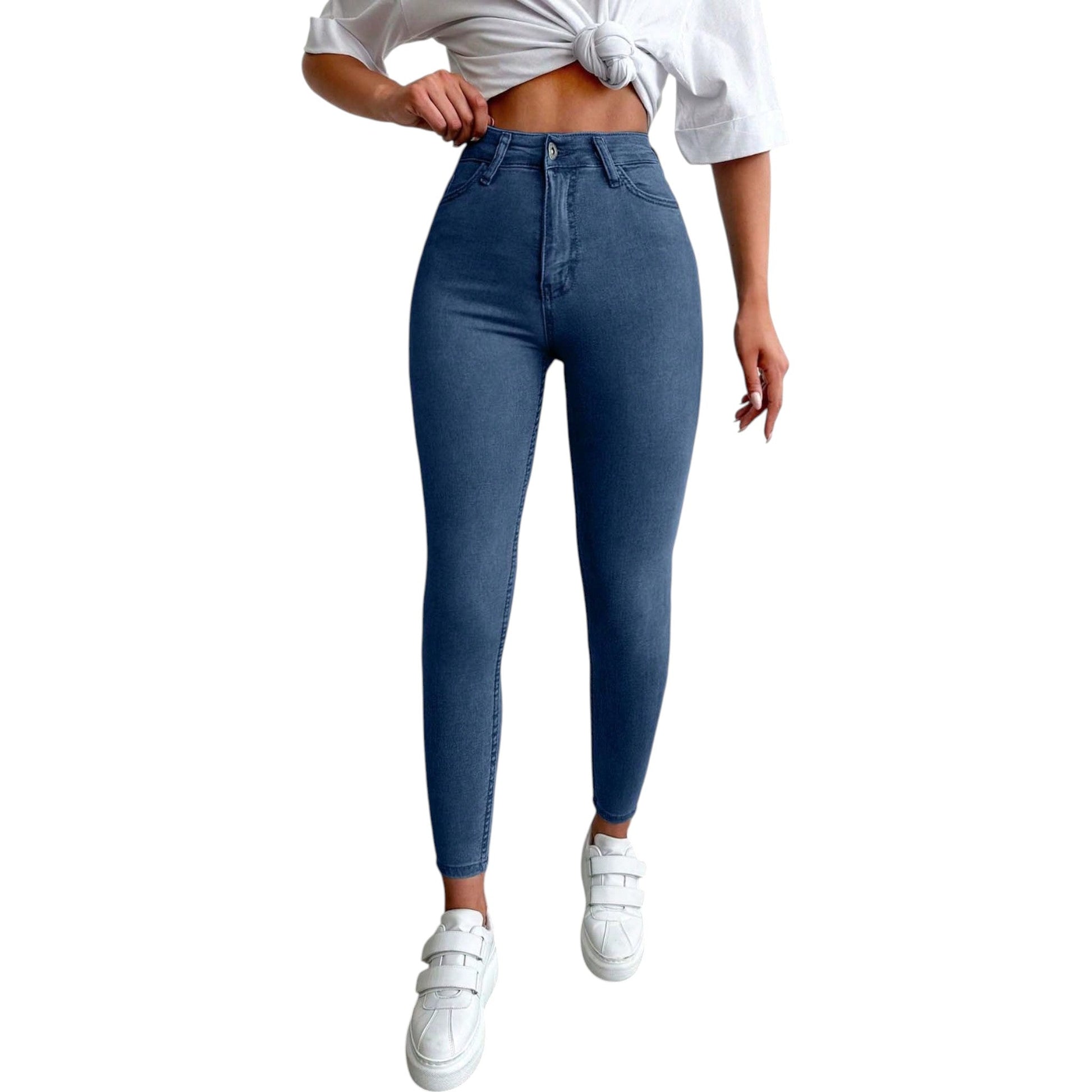 SHE kék magas derekú skinny farmer