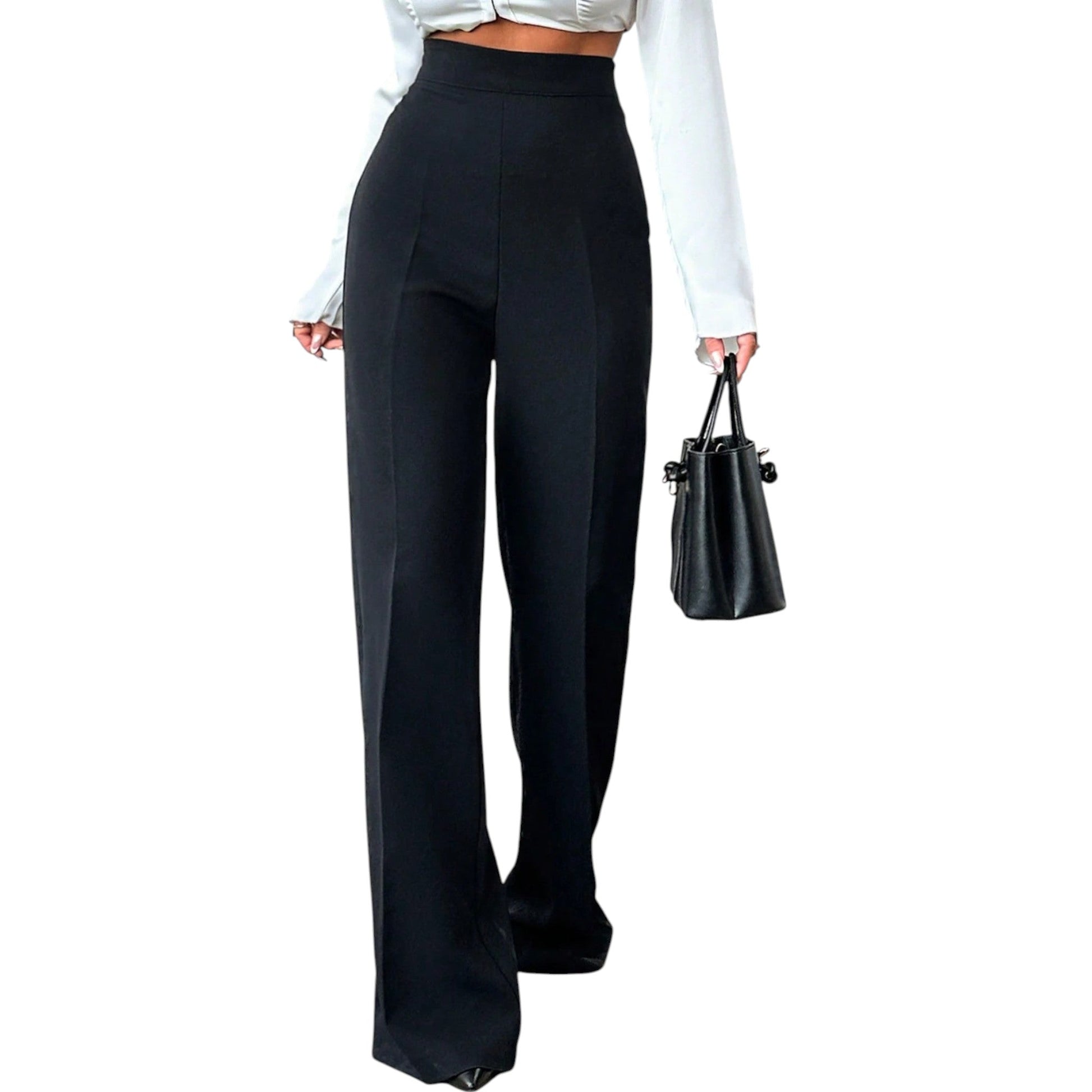 Címke nélküli, fekete, magas derekú, bő szárú elegáns nadrág
