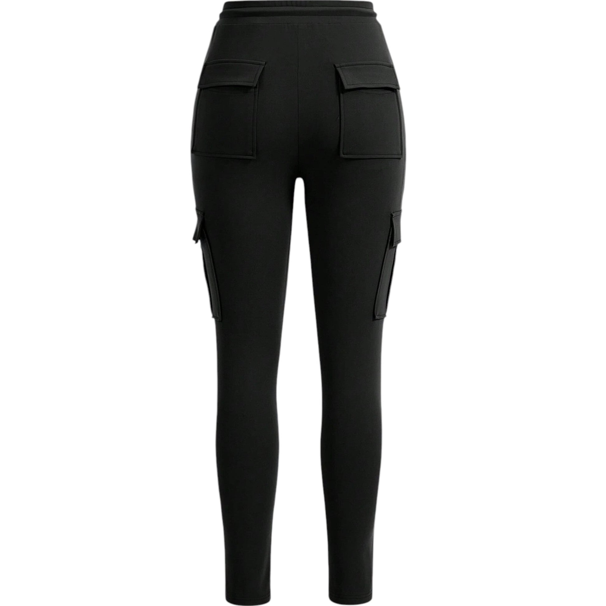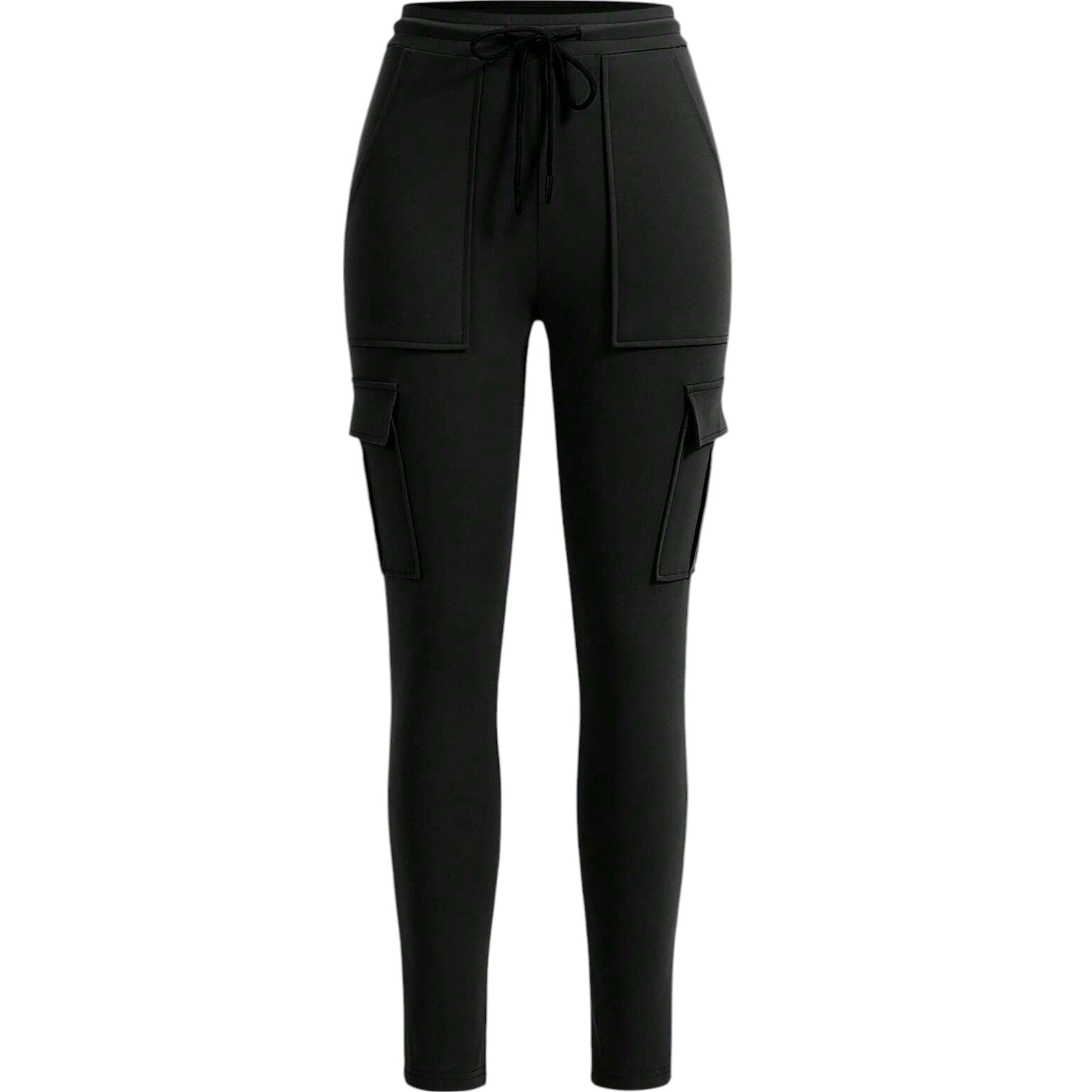 Címke nélküli, fekete, magas derekú, megkötős, zsebes cargo nadrág