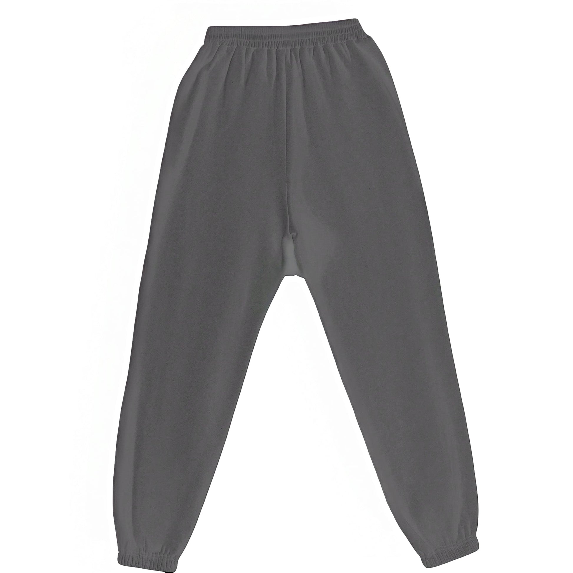 Címke nélküli, szürke, bő szabású melegítőnadrág gumírozott derékkal és bokával, oldalzsebekkel.