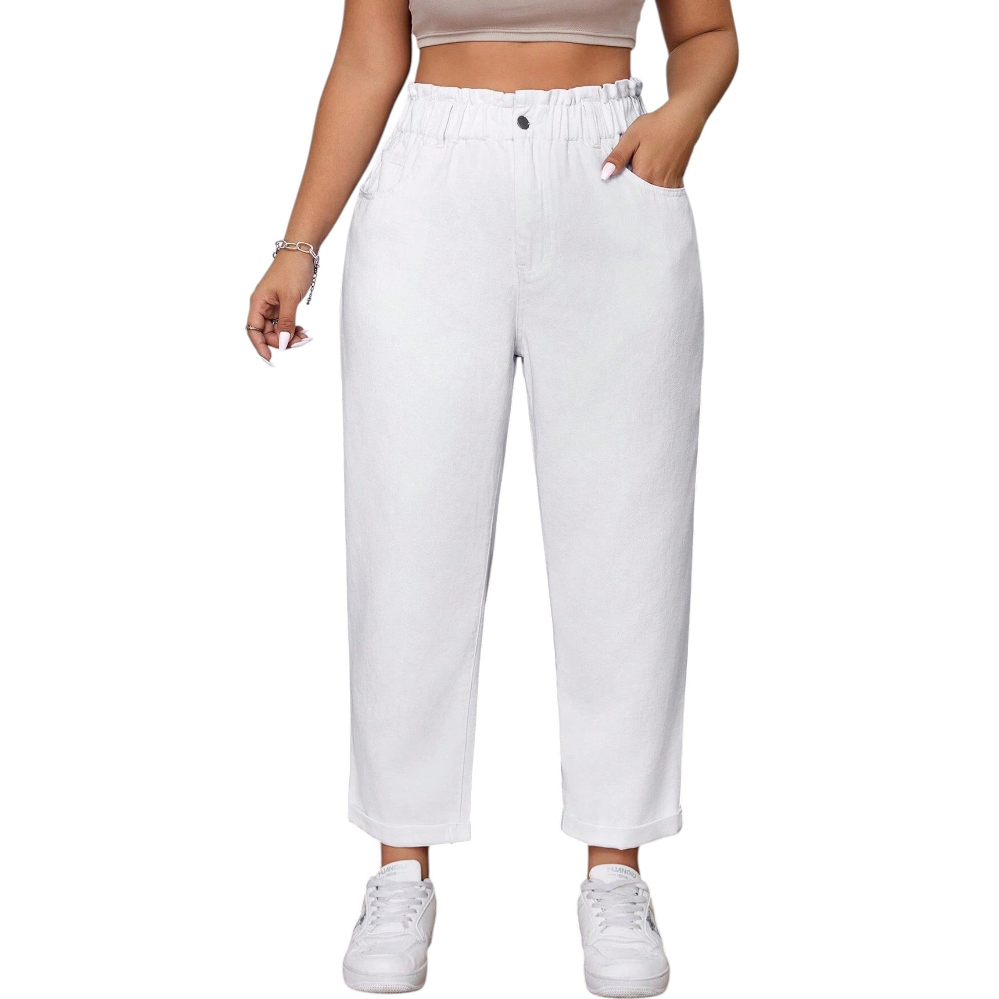 Címke nélküli, fehér, magas derekú, ráncolt derékú, boyfriend farmer nadrág.