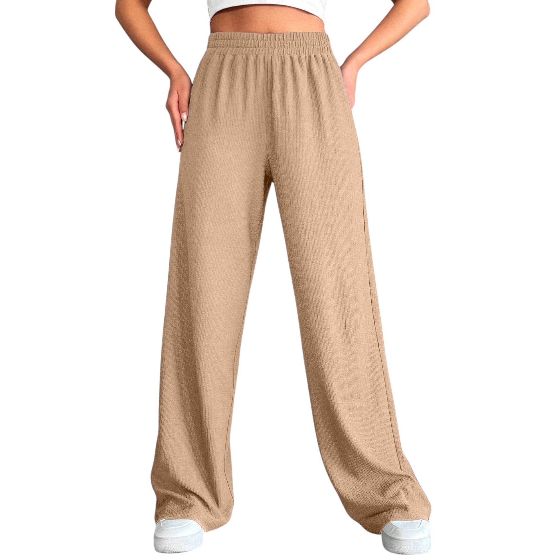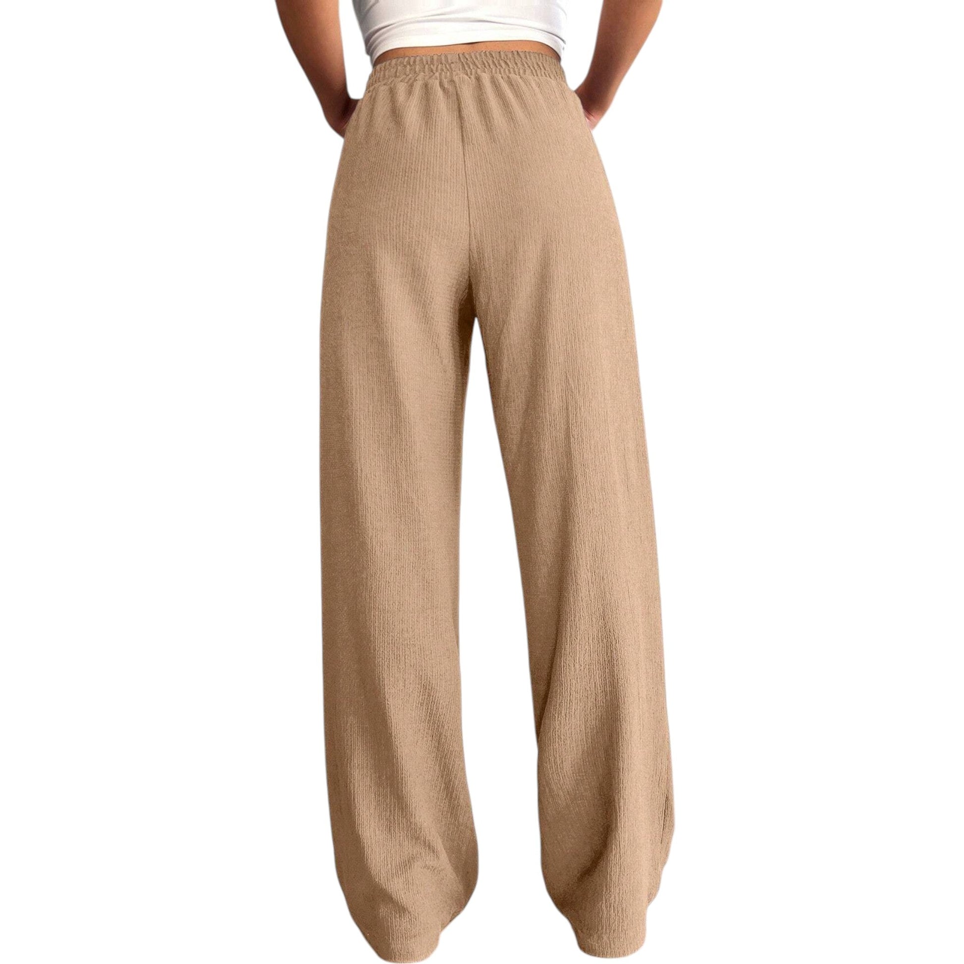 Címke nélküli, bézs, magas derekú, gumis derekú, bő szárú kötött nadrág