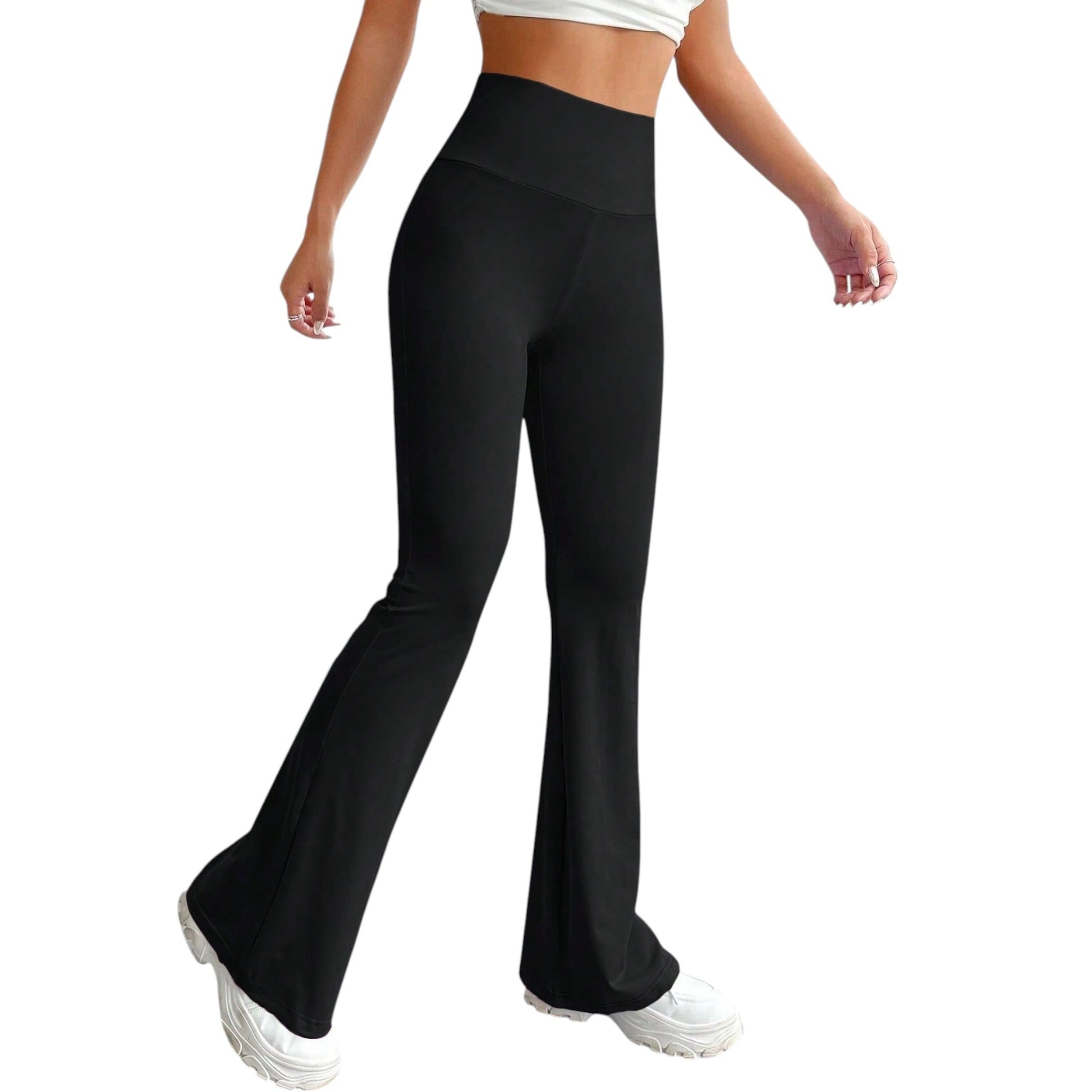 Címke nélküli, fekete, magas derekú, flared szárú jóganadrág