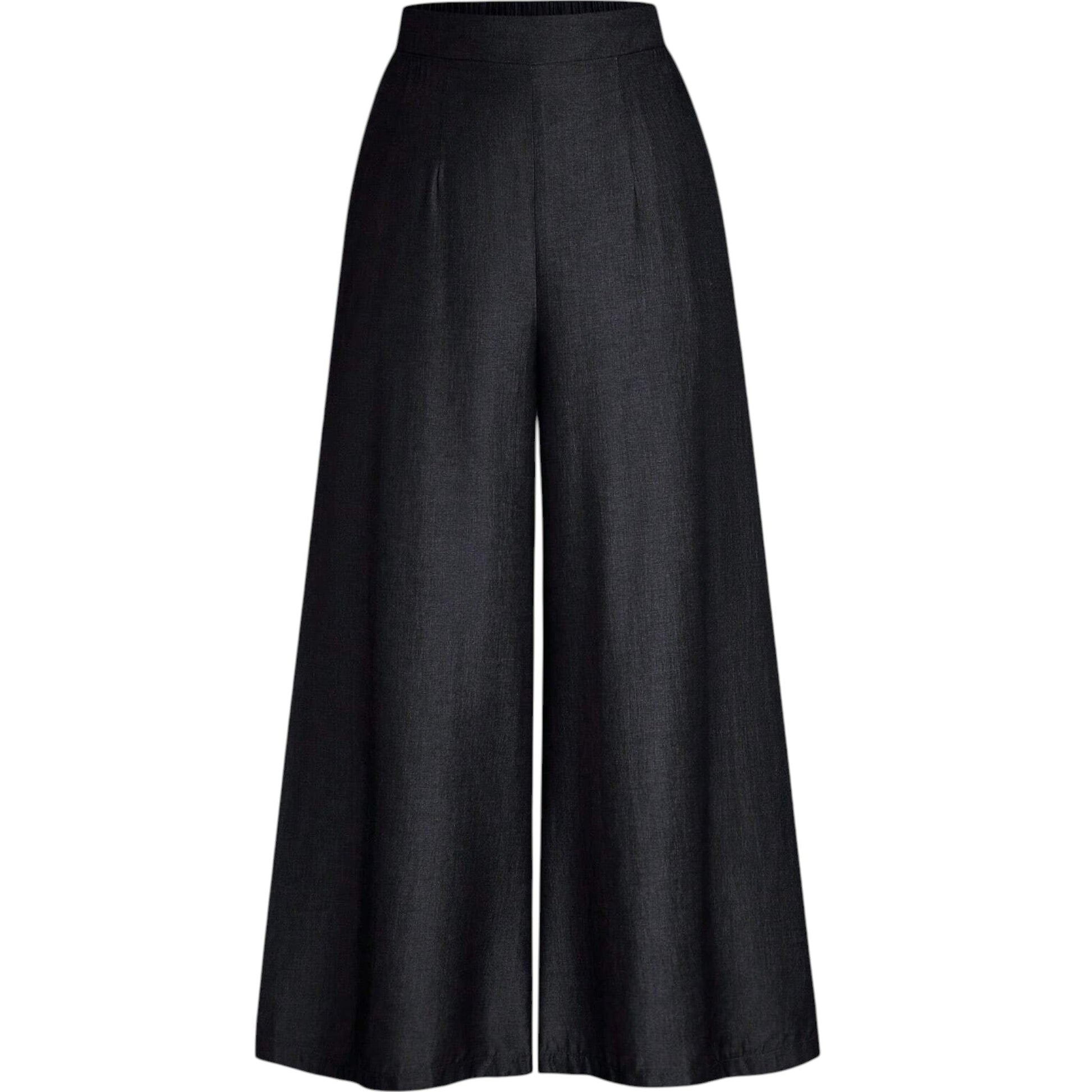 Címke nélküli, fekete, magas derekú, bő szárú culottes nadrág.