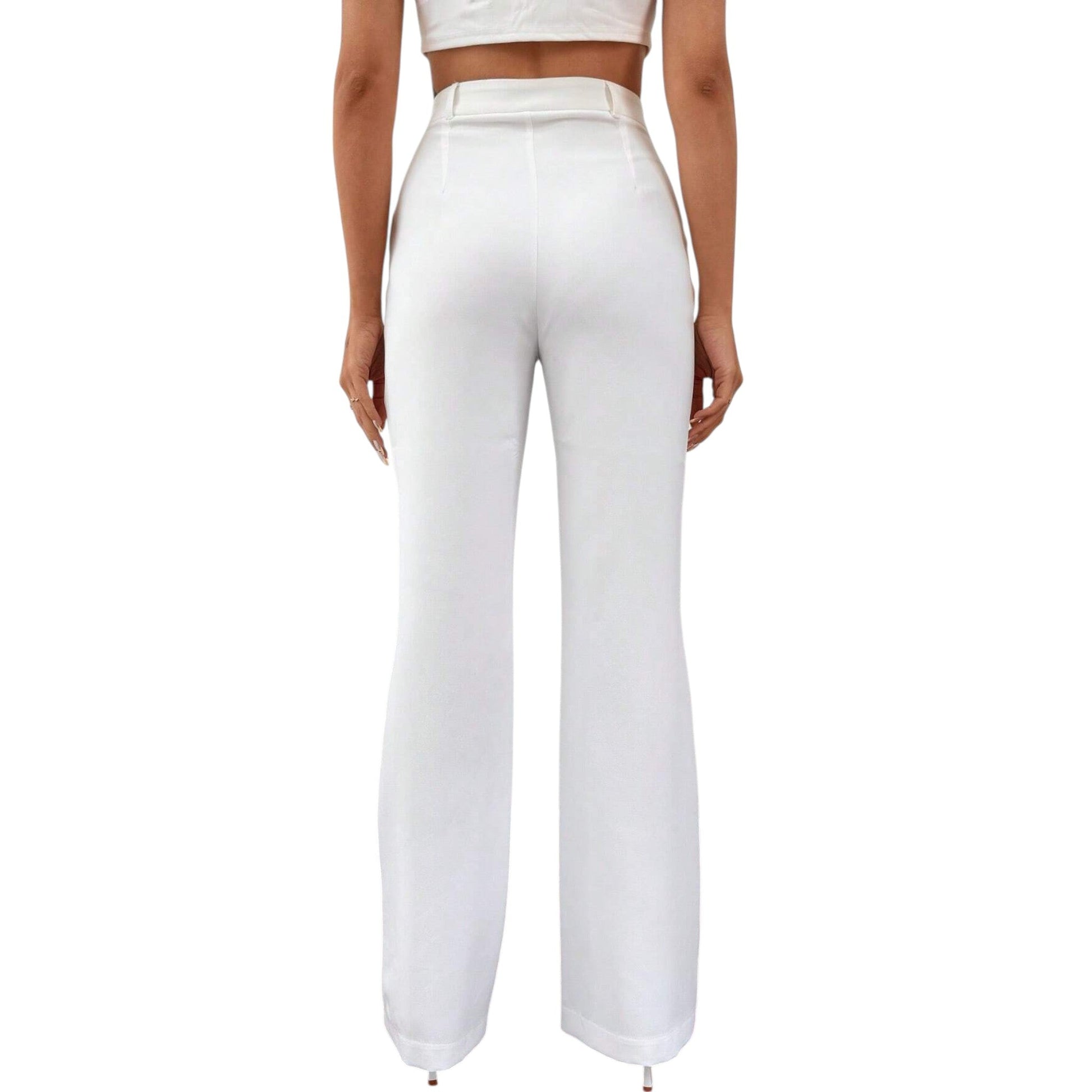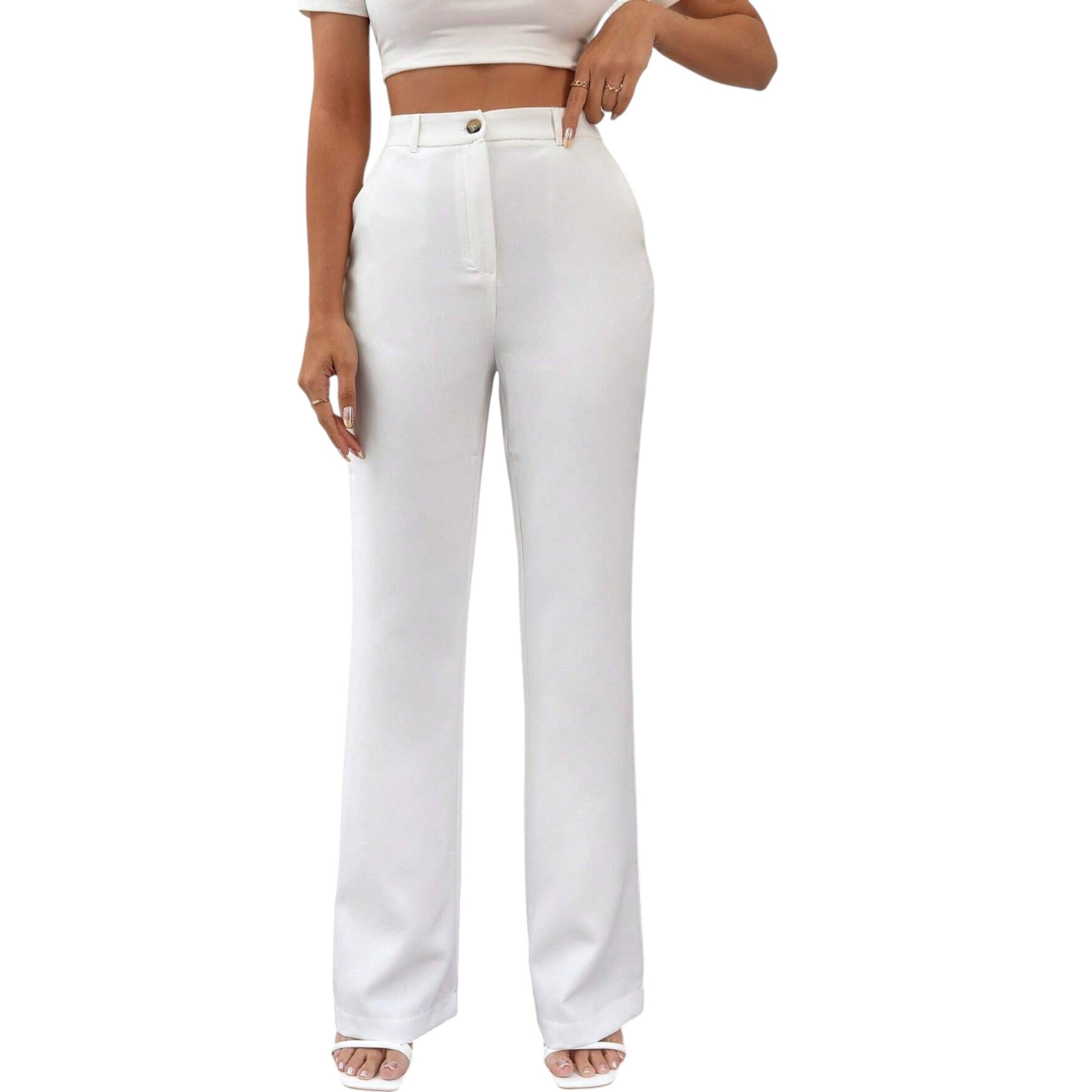 Címke nélküli, fehér, magas derekú, egyenes szárú nadrág