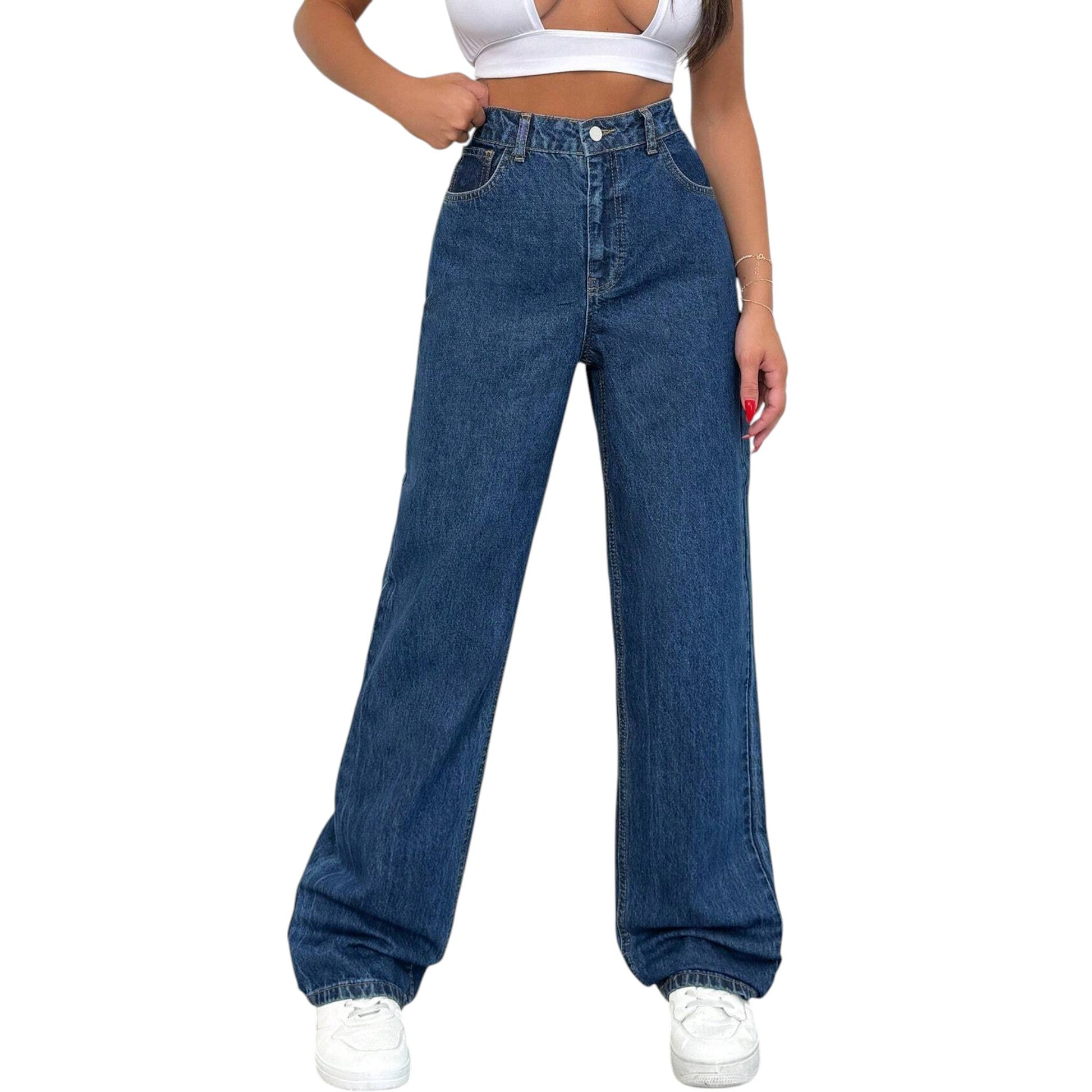 Címke nélküli, kék, magas derekú, egyenes szárú, bő fazonú.