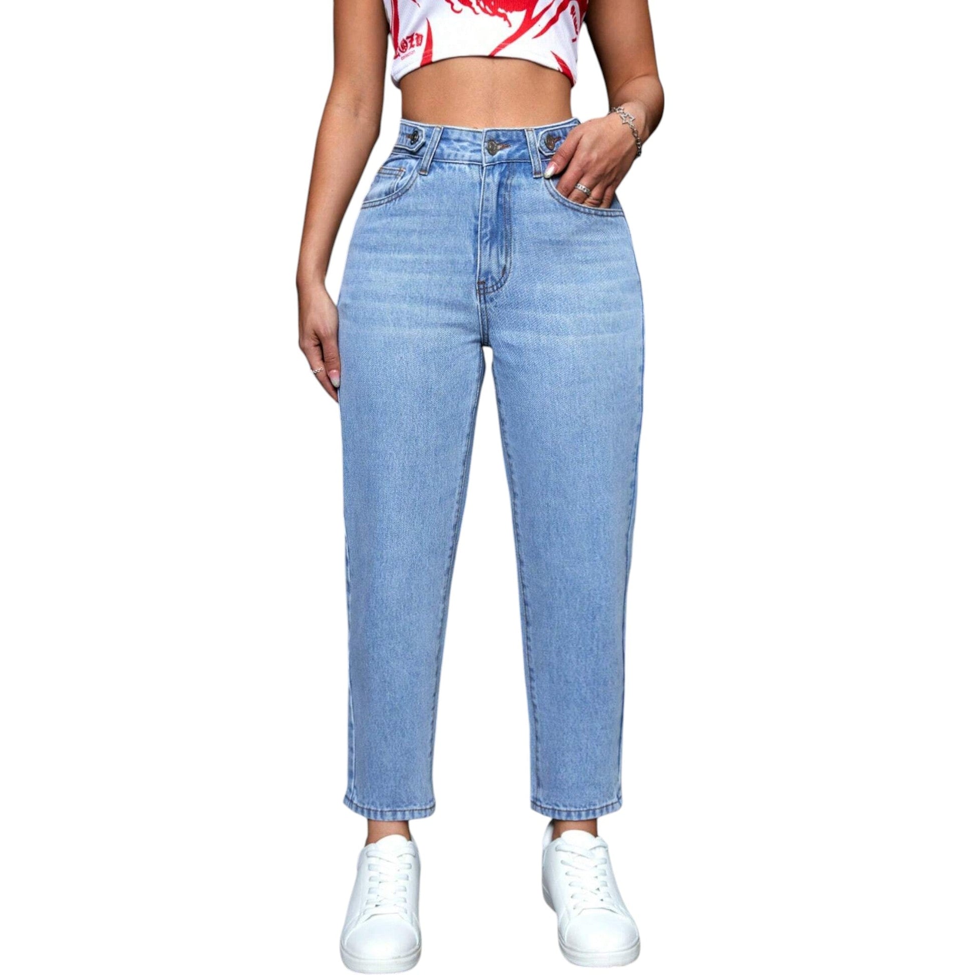 Címke nélküli, világoskék, magas derekú, mom fit stílusú