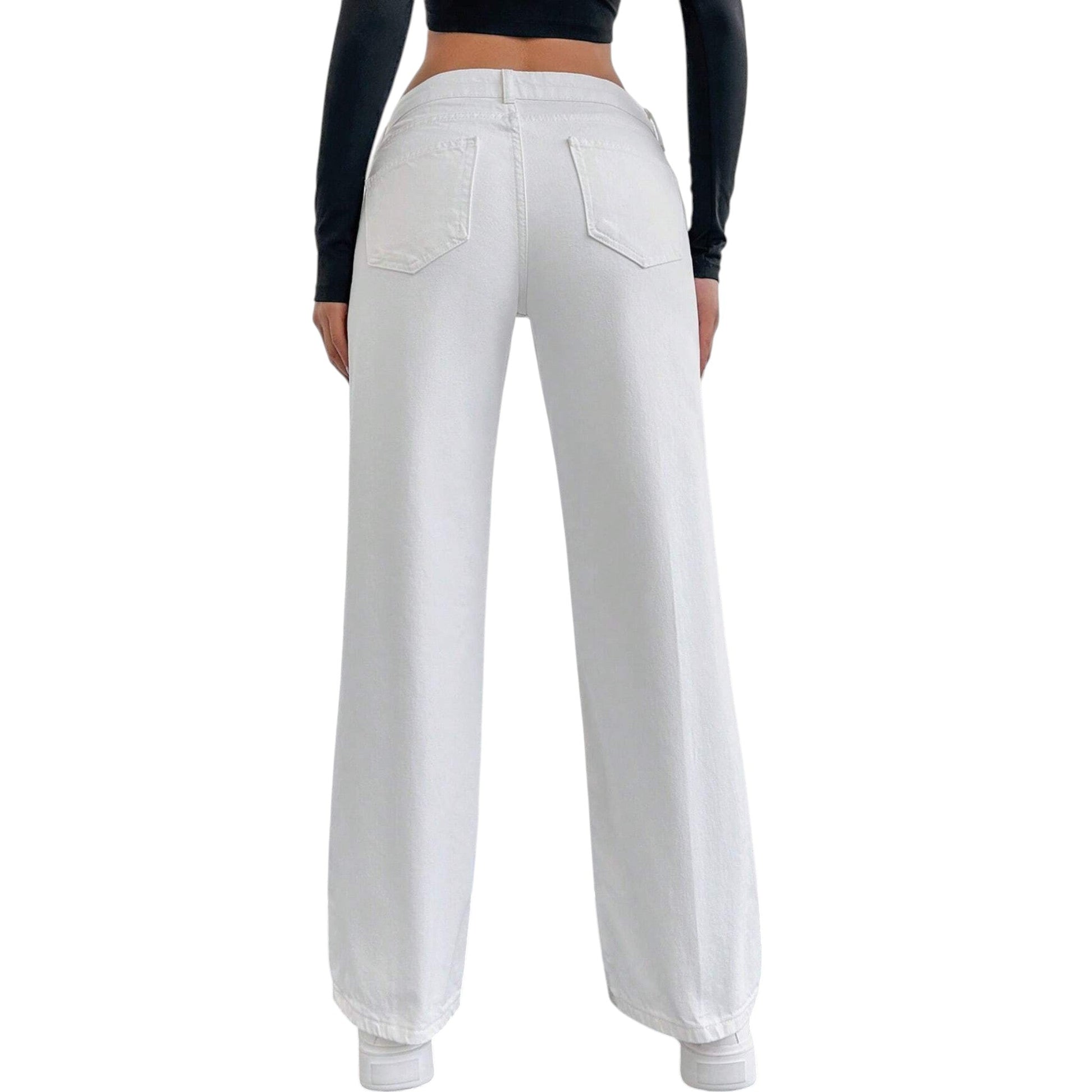Címke nélküli, fehér, alacsony derekú, egyenes szárú farmer.