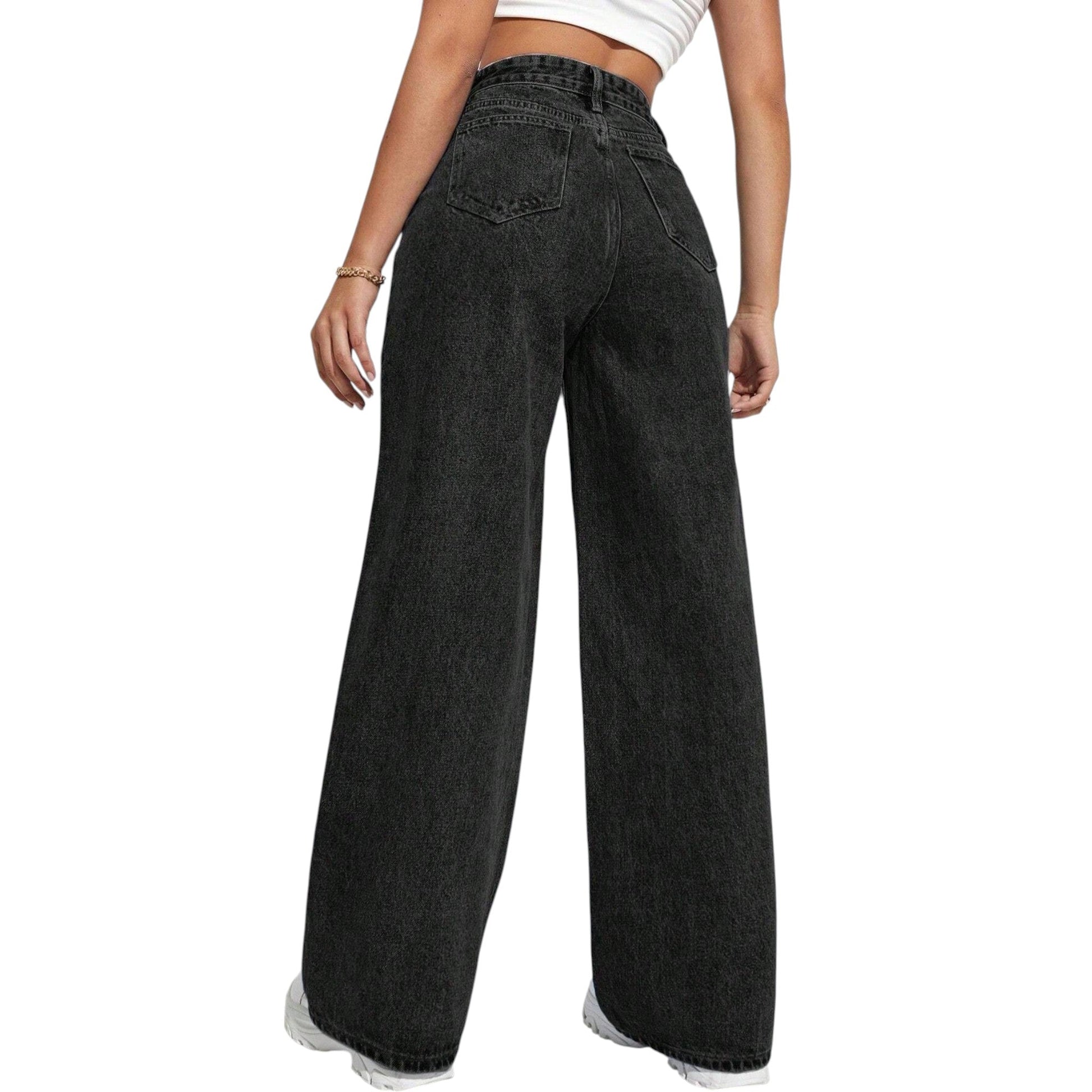 Címke nélküli, fekete, magas derekú, egyenes szárú, bő fazonú.