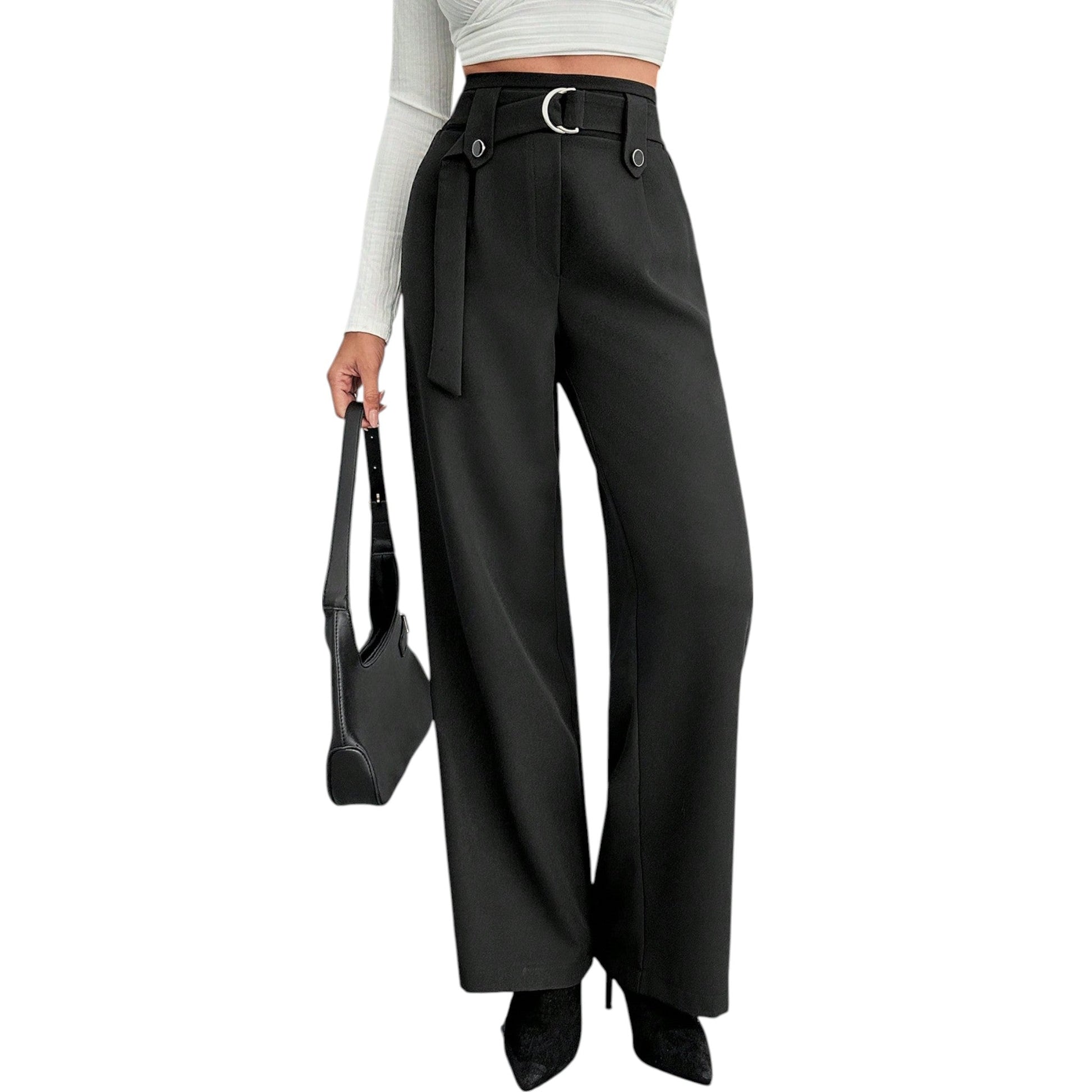 Címke nélküli, fekete, magas derekú, öves, bő szárú nadrág.