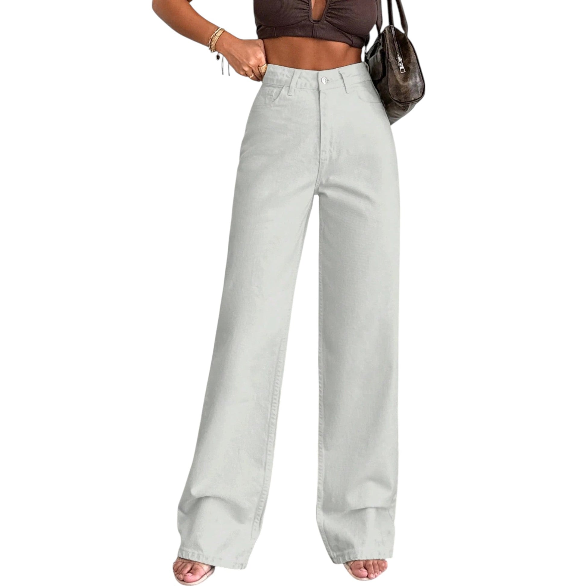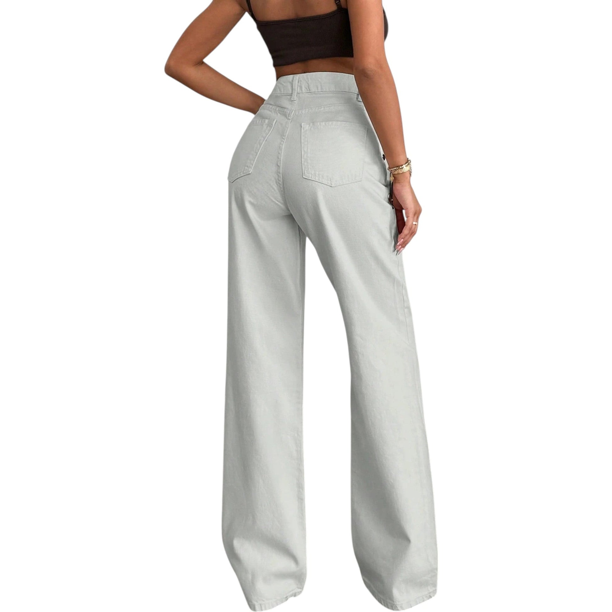Címke nélküli, világosszürke, magas derekú, bő szárú, klasszikus fazon.