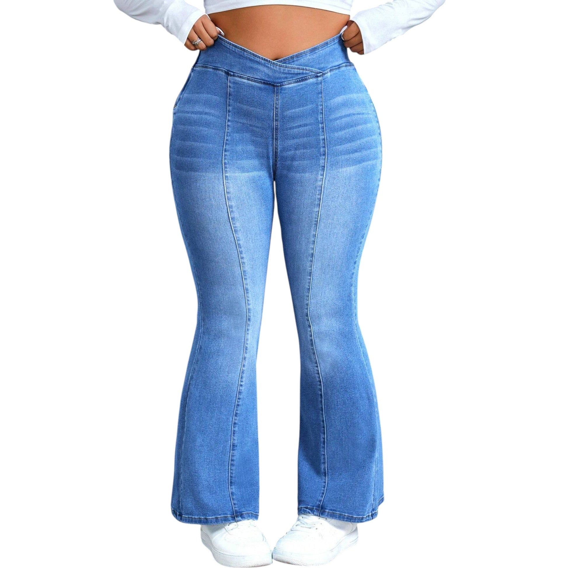 Címke nélküli, kék, magas derekú, trapéz szárú, hasított derékrész.