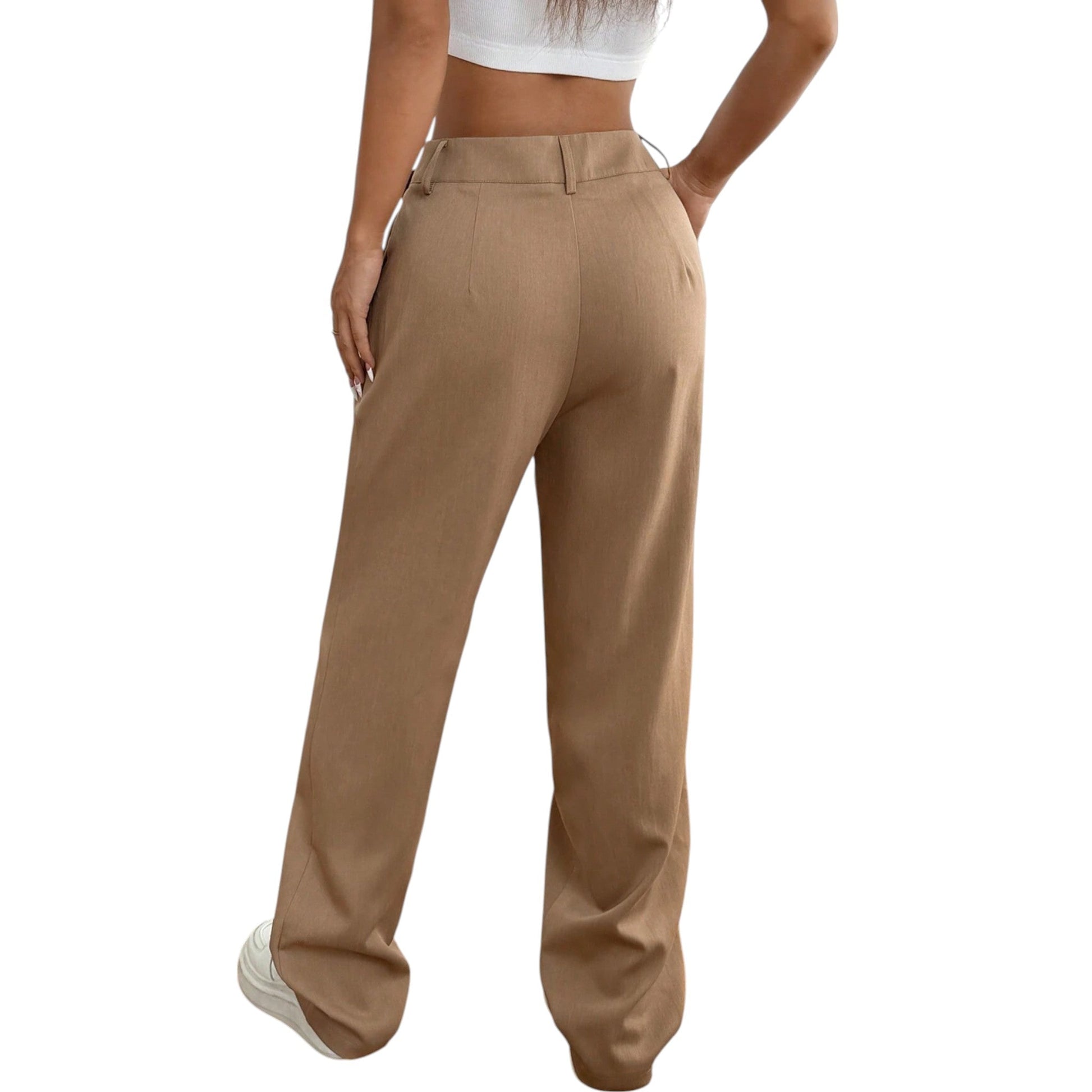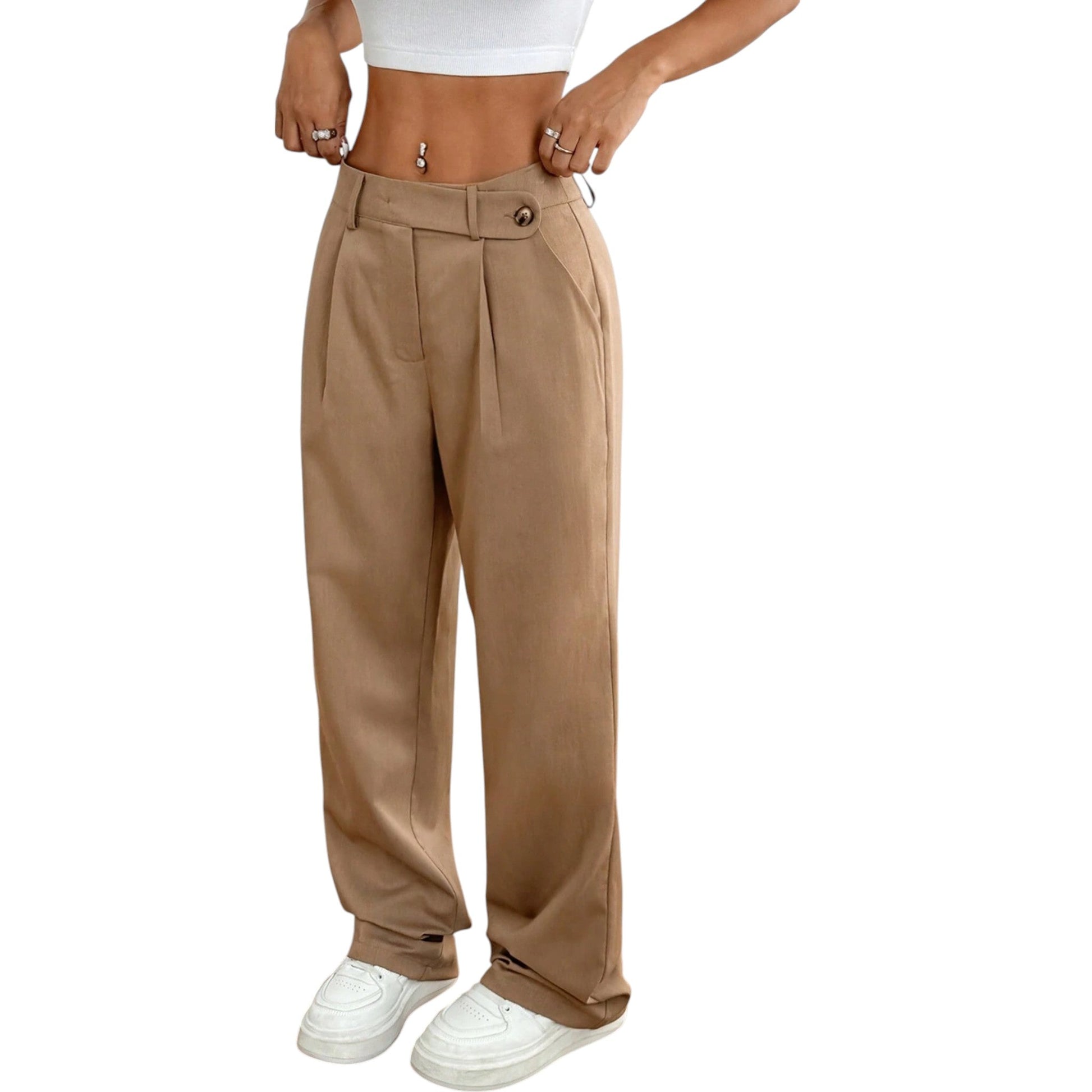 Címke nélküli, bézs, magas derekú, gombos, egyenes szárú, ráncolt.