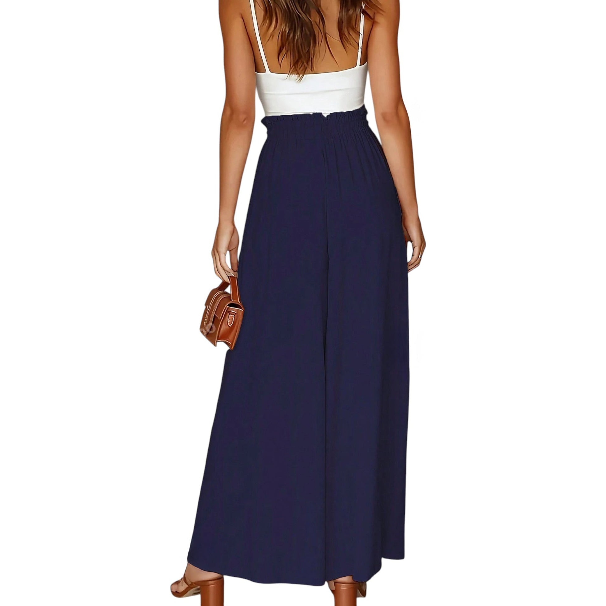 Címke nélküli, sötétkék, bő szárú, magas derekú, megkötős, zsebes.