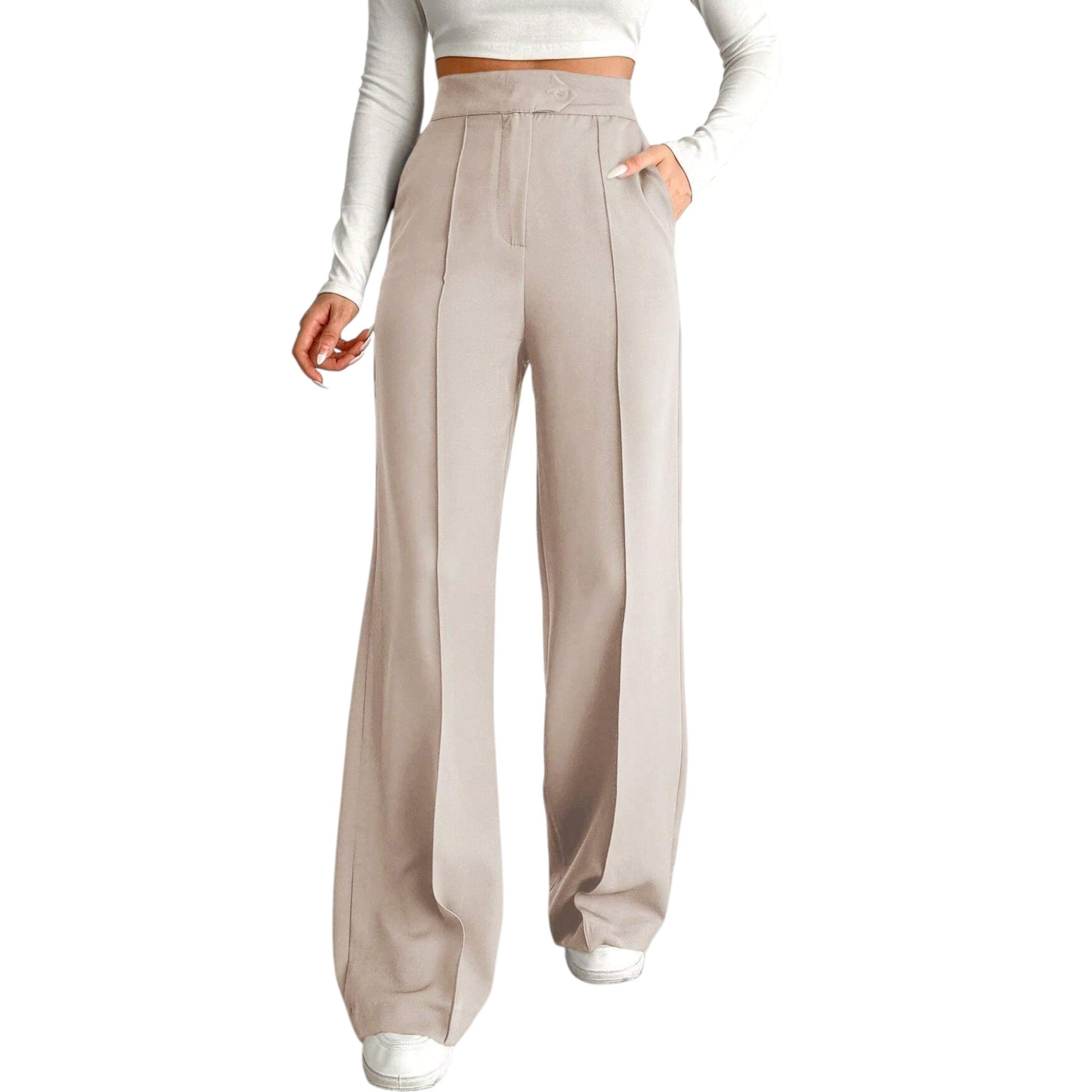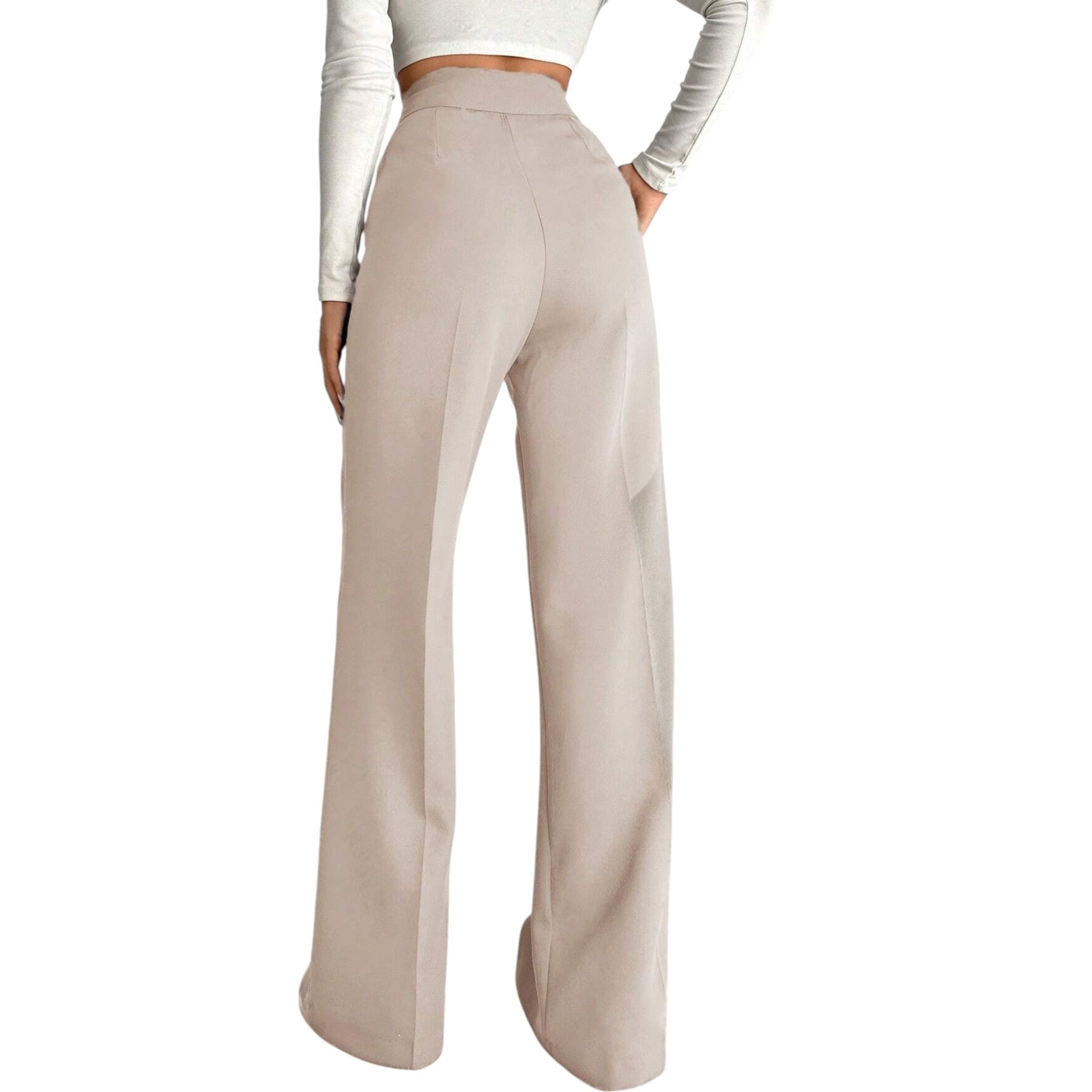 Címke nélküli, bézs, egyenes szárú, palazzo stílusú, magas derekú