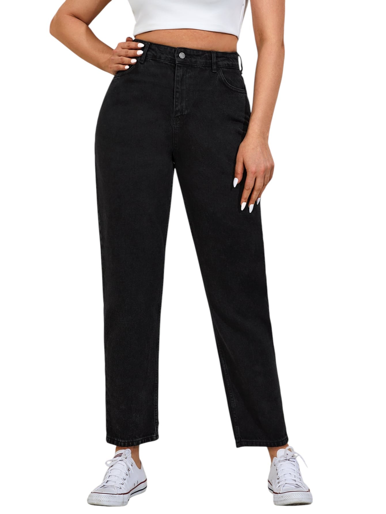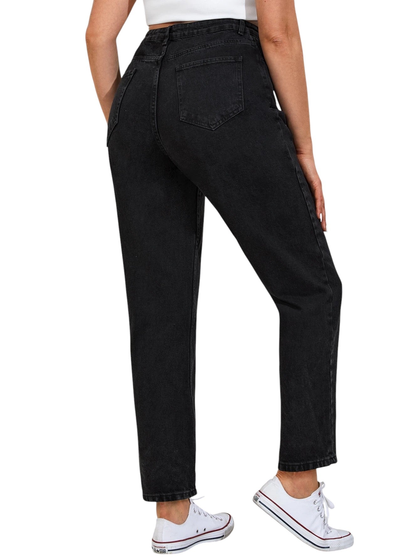 Címke nélküli, fekete, magas derekú, egyenes szárú, klasszikus farmer anyagból.