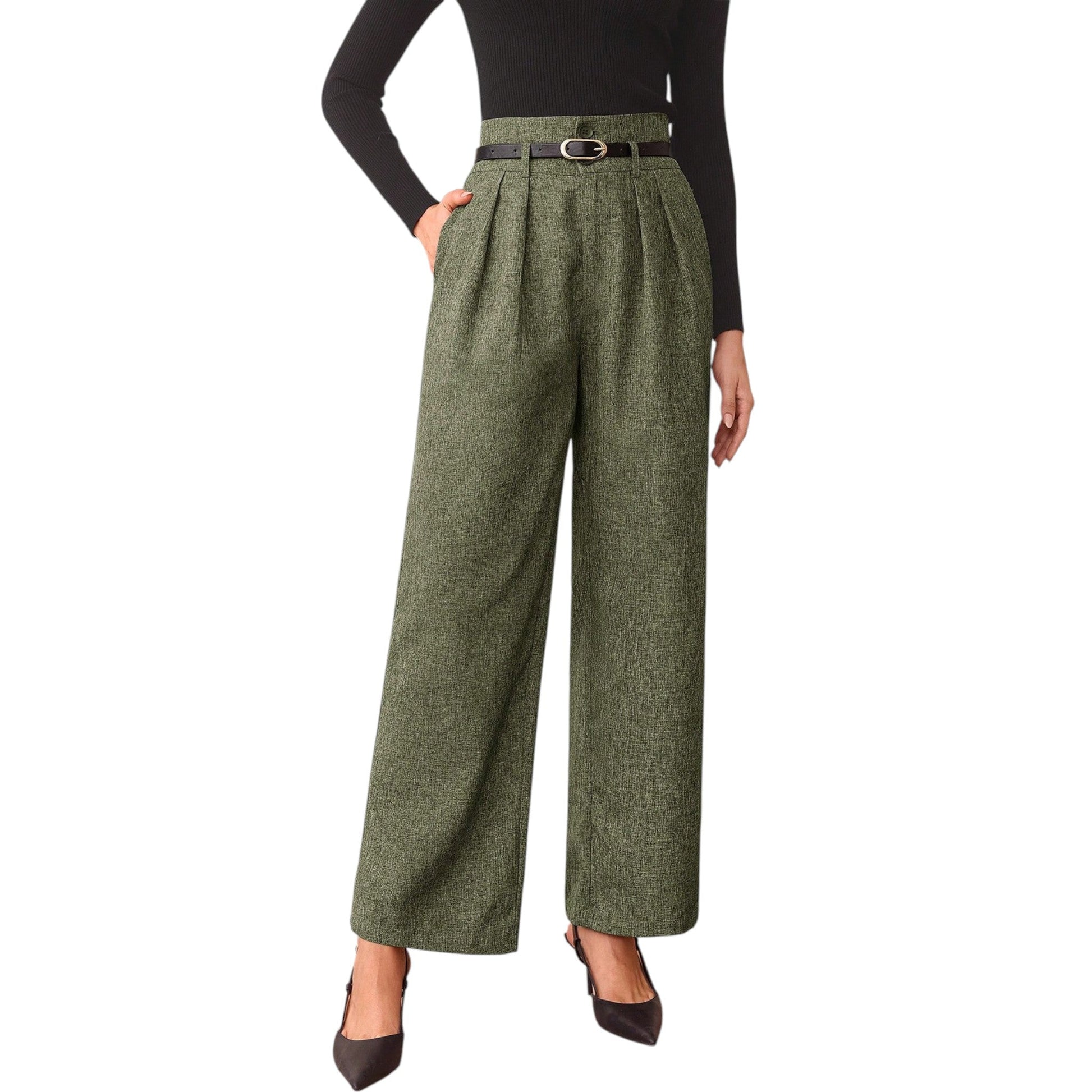 Címke nélküli, zöld, magas derekú, pliszírozott, széles szárú nadrág.