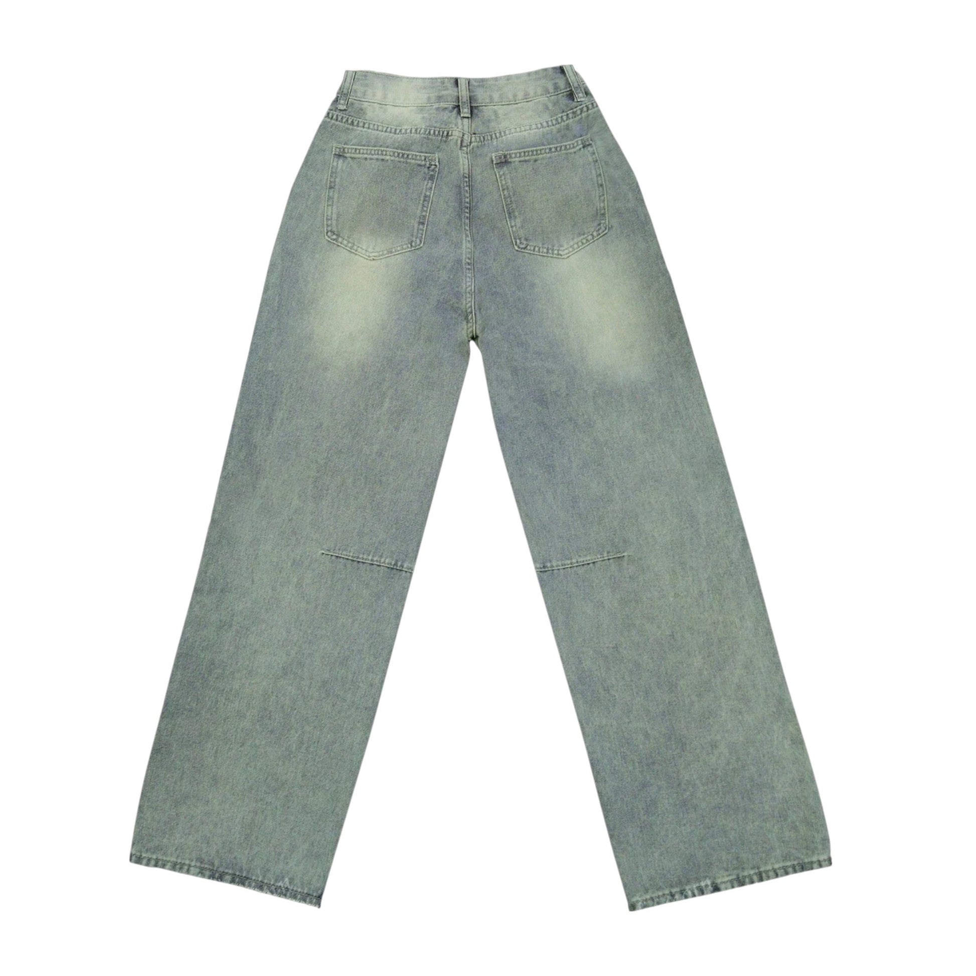 Címke nélküli, világoskék, baggy fazonú, magas derekú farmer nadrág.