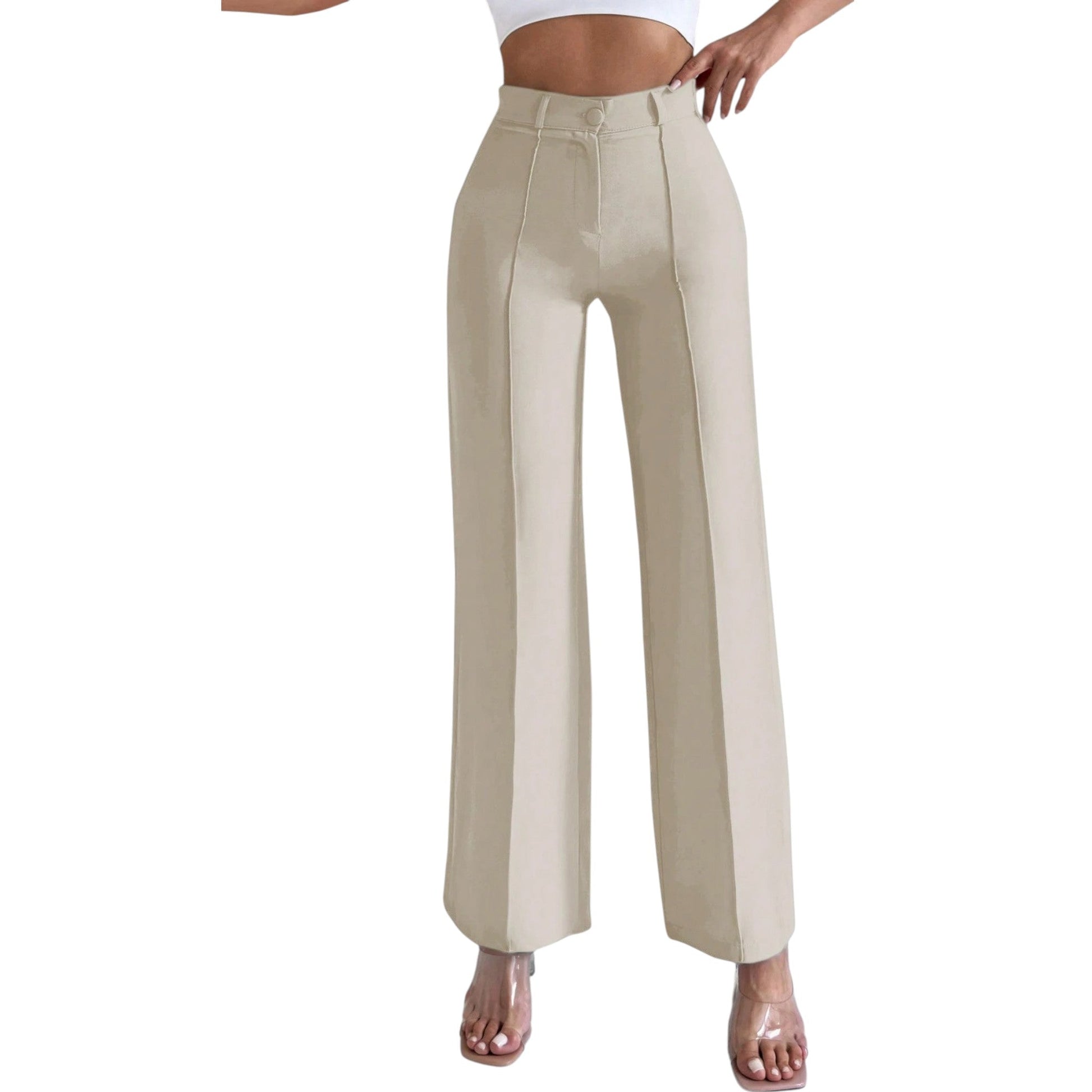 SHE bézs magas derekú egyenes szárú nadrág