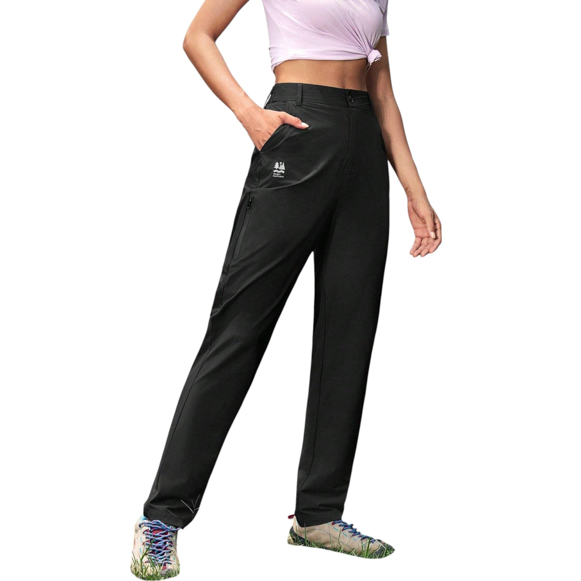 Címke nélküli, fekete színű túranadrág. Egyenes szárú, cipzáras zsebekkel. Gombos záródású.
