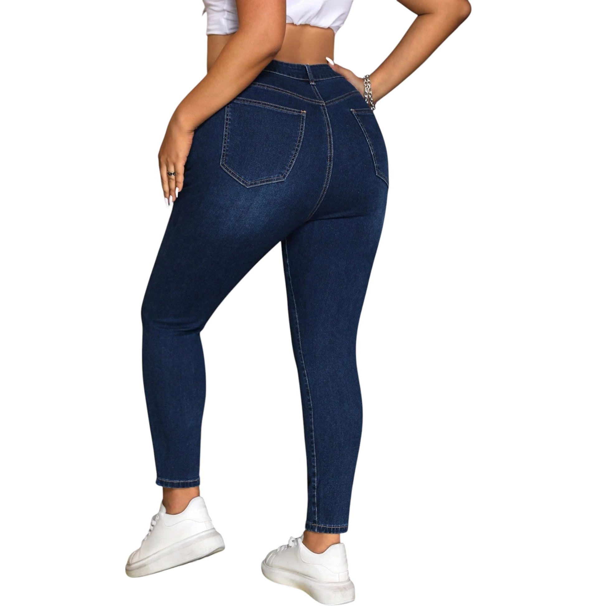 Címke nélküli, sötétkék, magas derekú, skinny farmer nadrág.