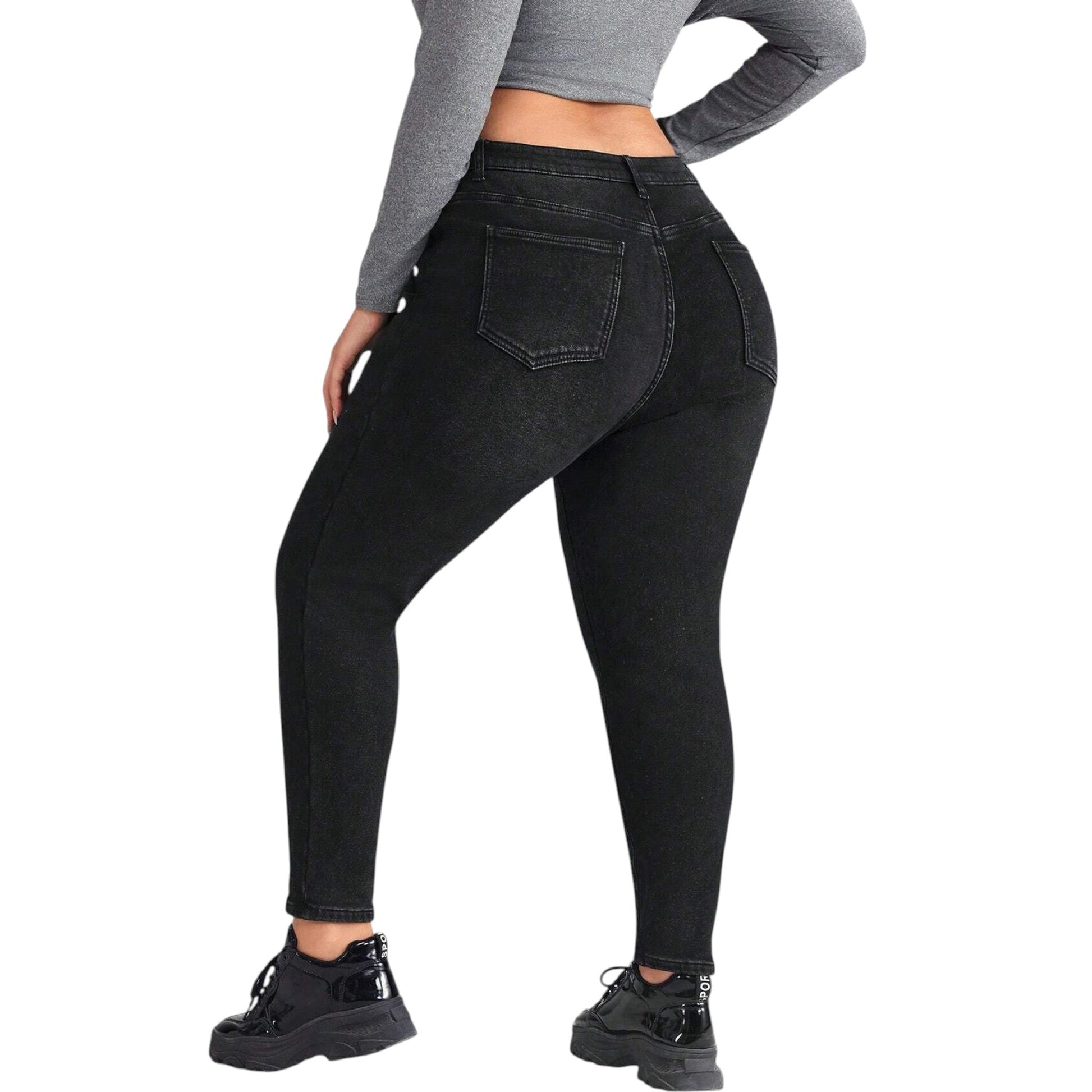 SHE fekete slim fit farmer nadrág