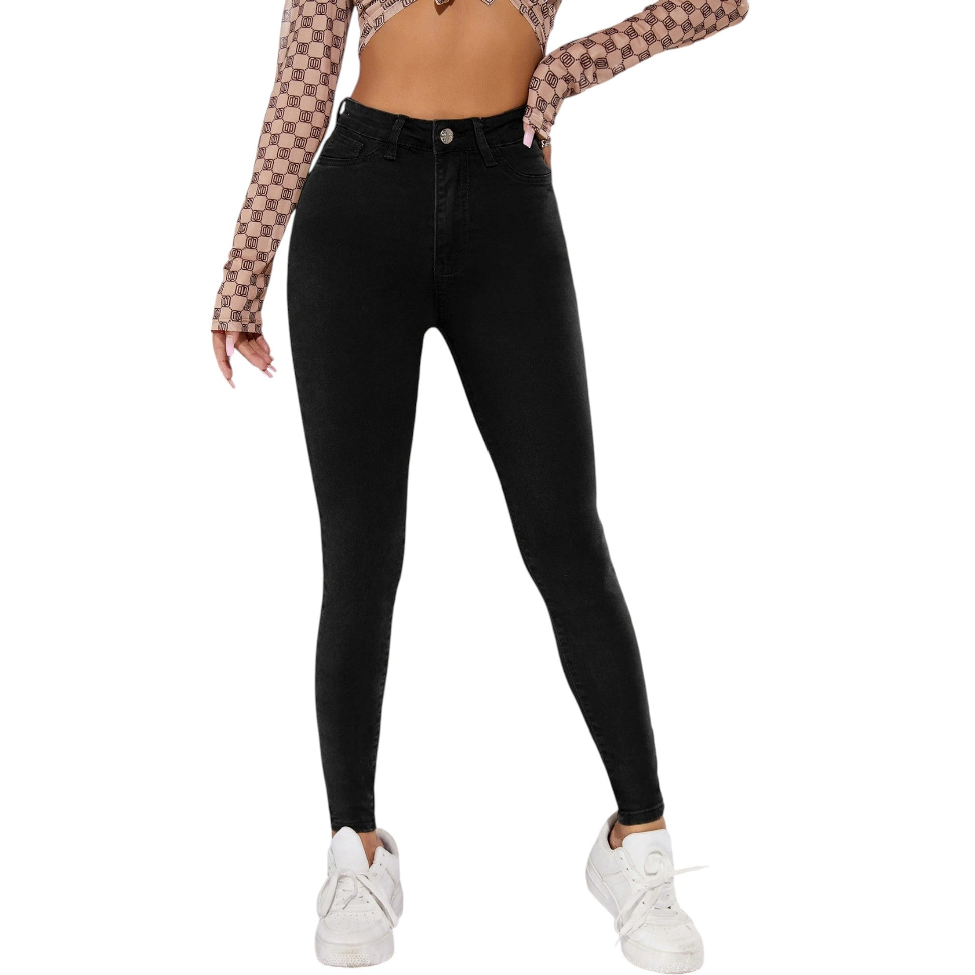 SHE fekete magas derekú skinny farmer nadrág