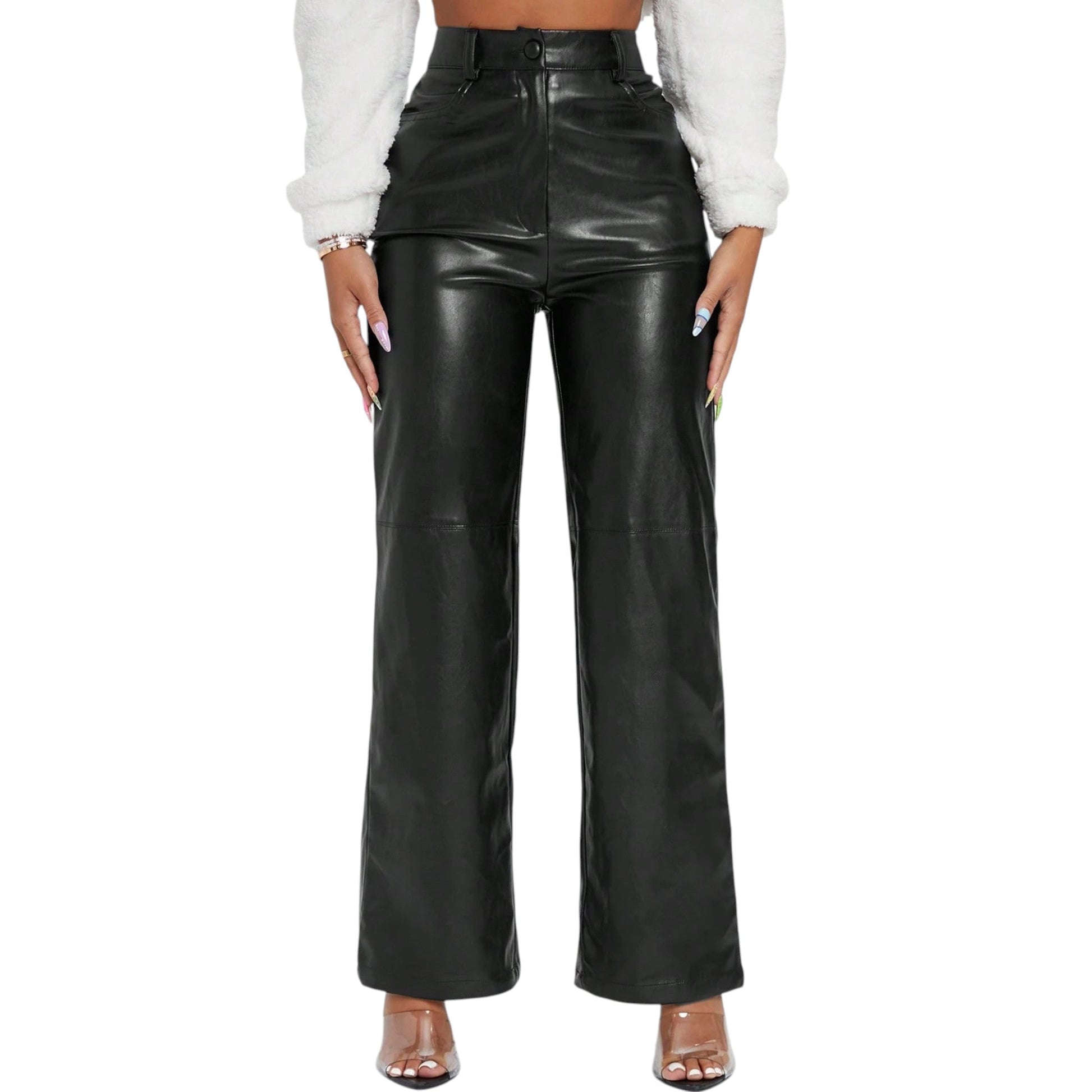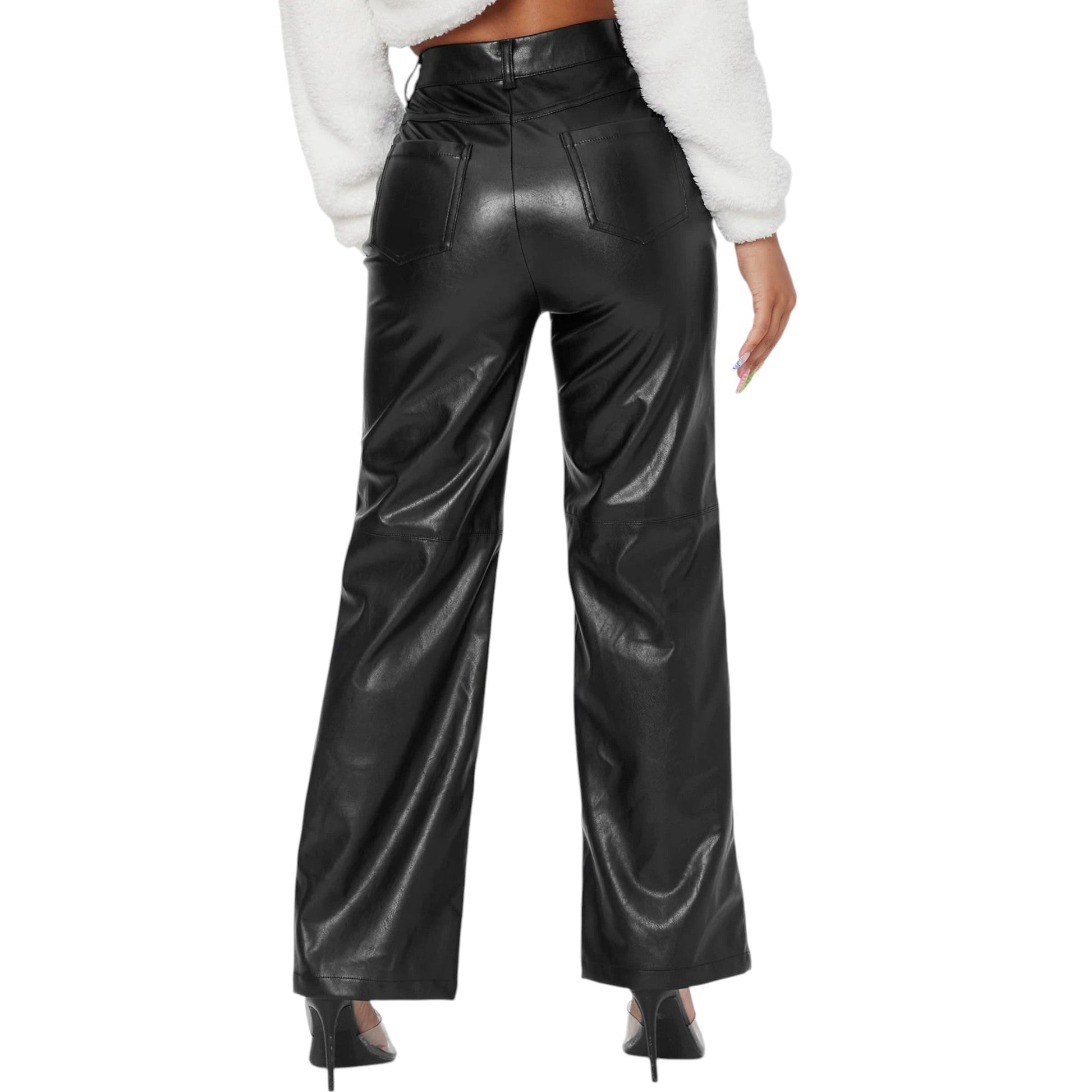 SHE fekete műbőr egyenes szárú nadrág