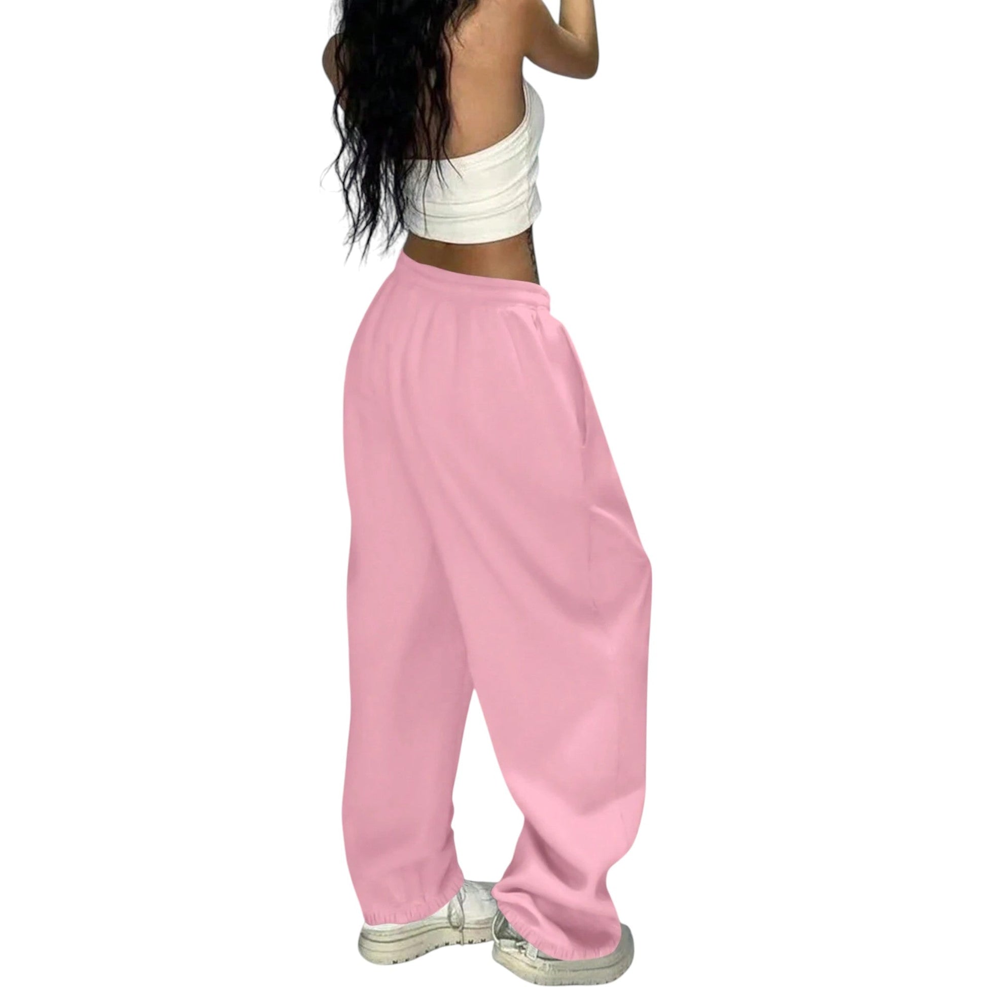 Címke nélküli, rózsaszín, bő szabású, gumírozott derekú, zsebes, melegítő nadrág.