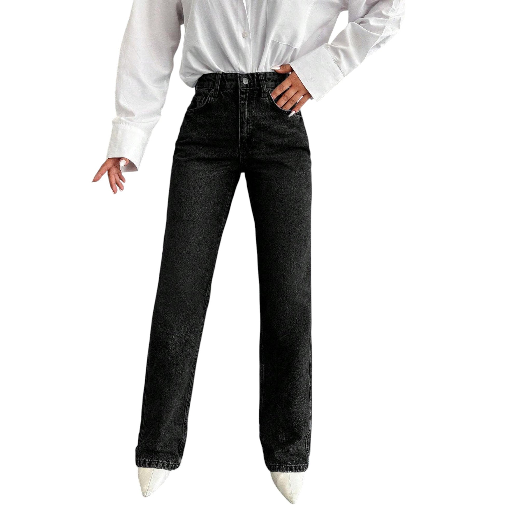 SHE fekete egyenes szárú farmer nadrág