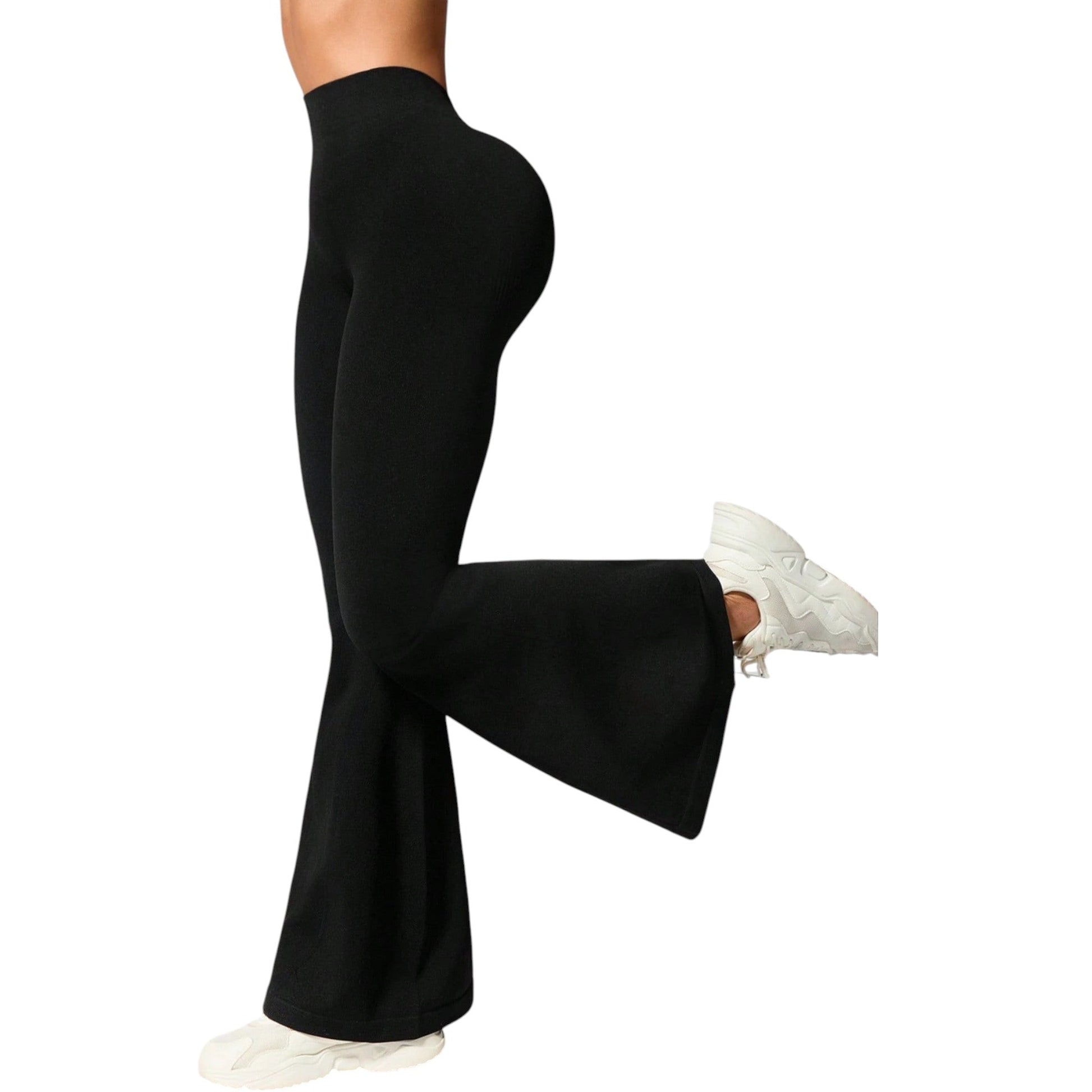 Címke nélküli, fekete, varrás nélküli, magas derekú, enyhén bővülő szárú leggings.