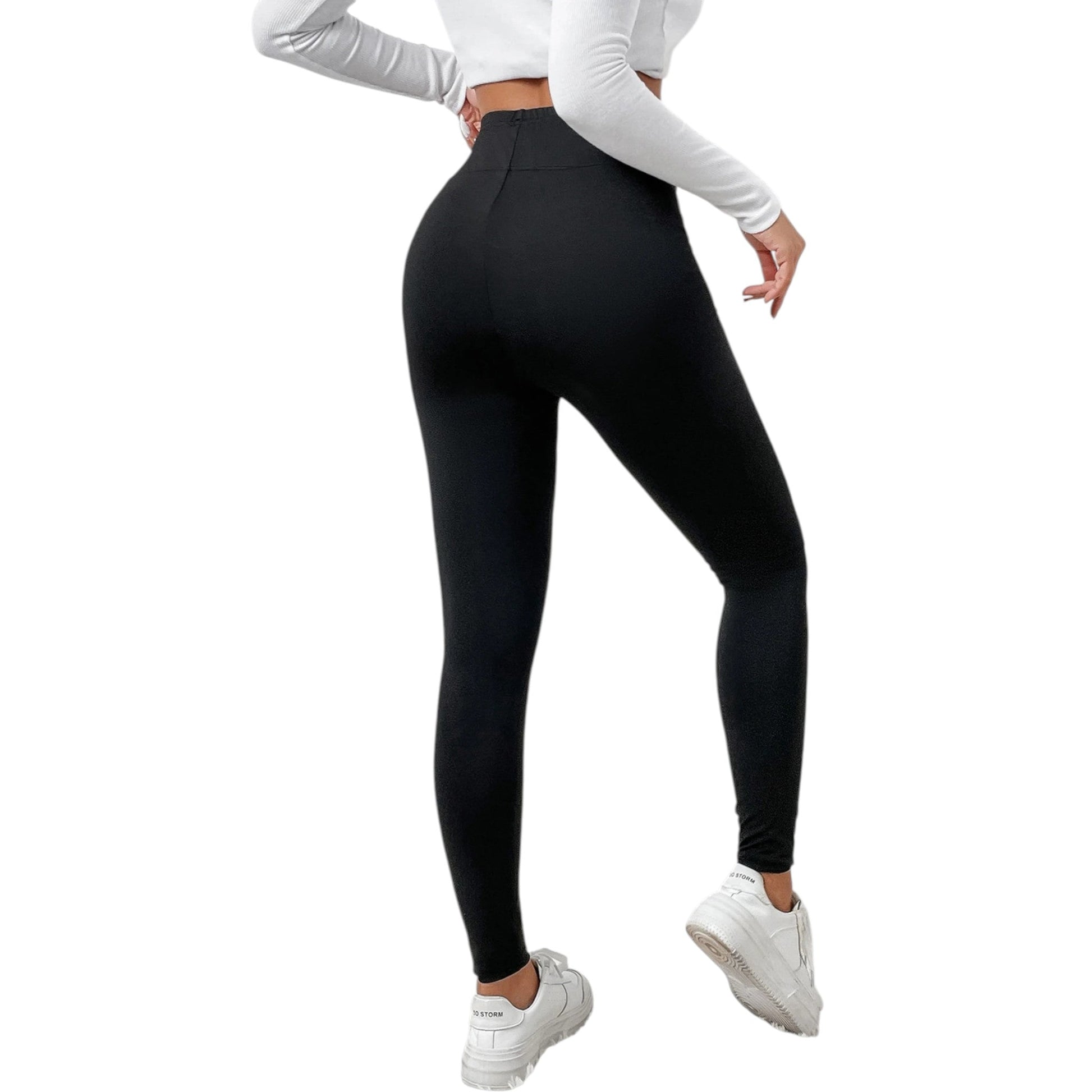Címke nélküli, fekete, magas derekú, slim fit leggings.
