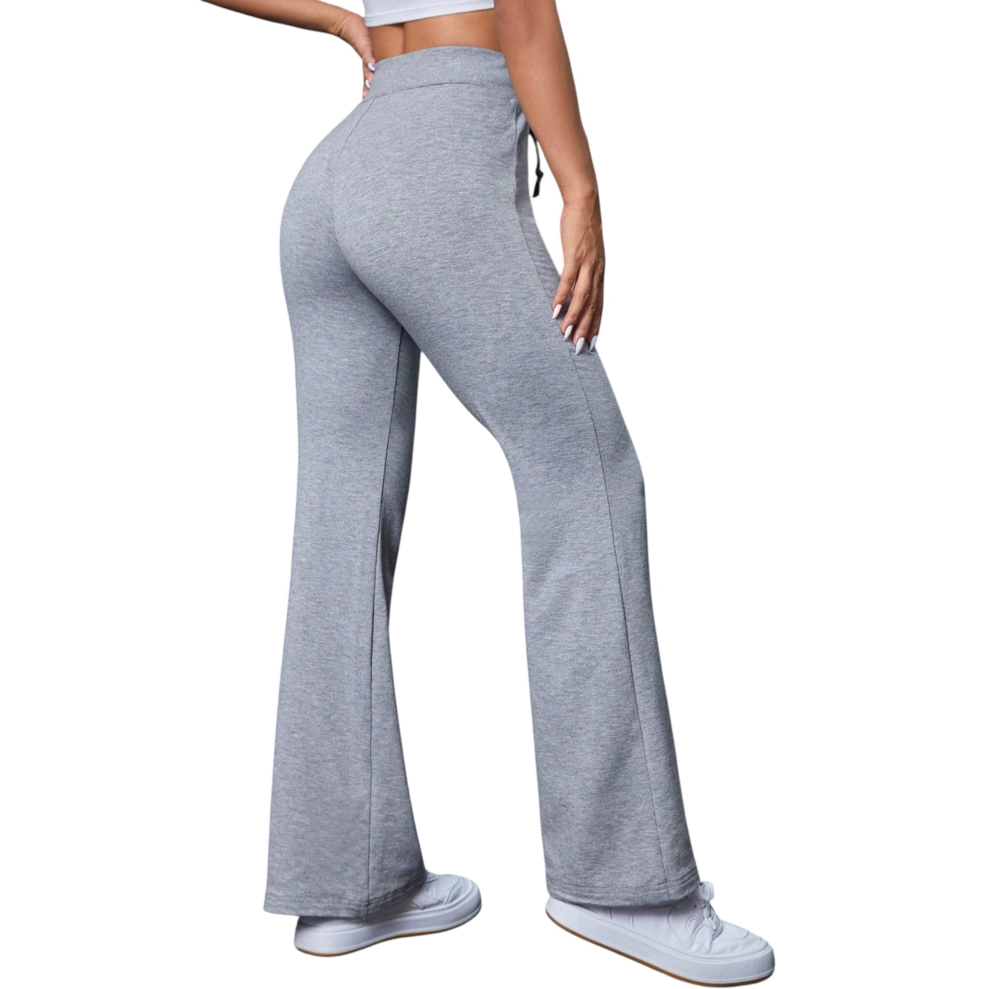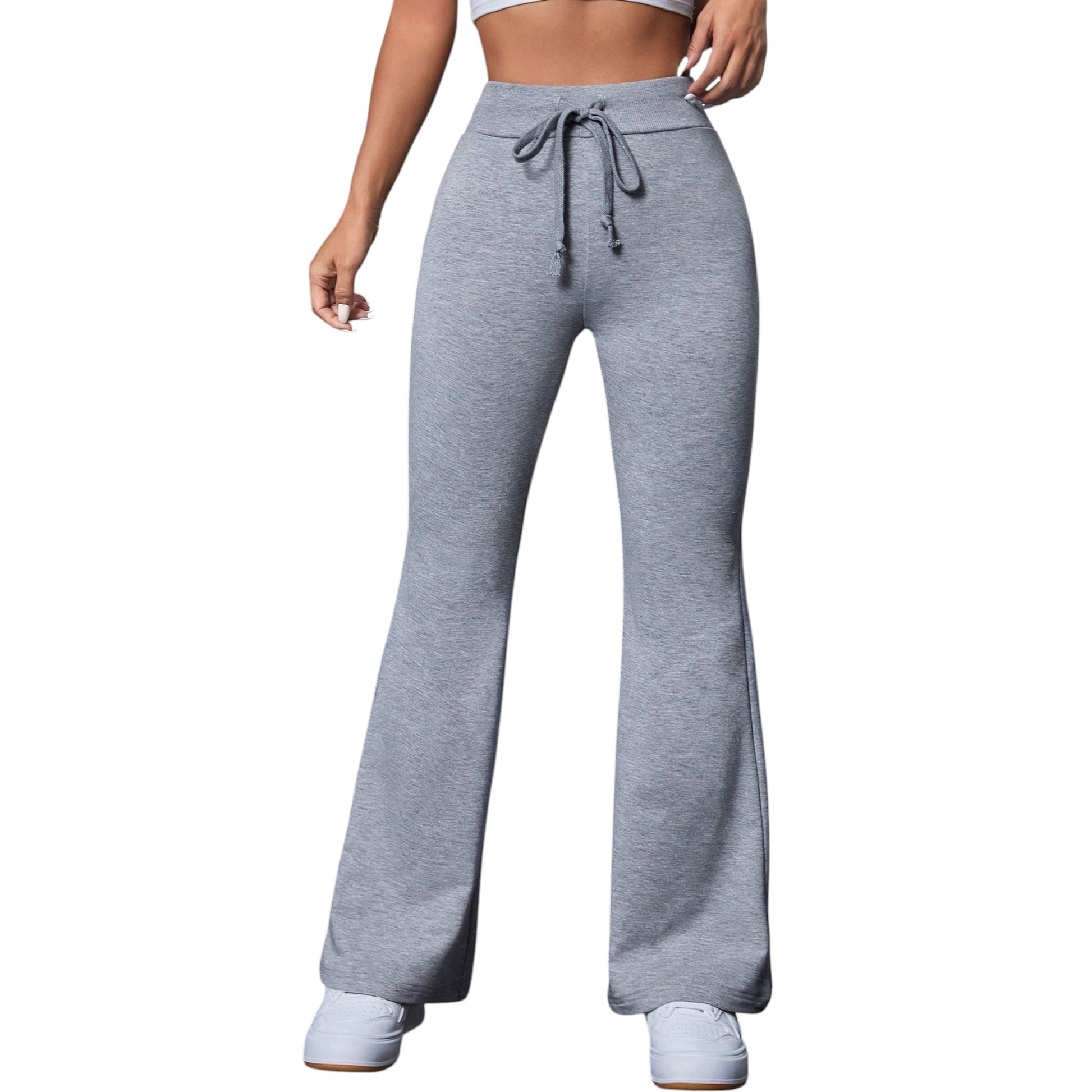 Címke nélküli, szürke, slim fit, megkötős nadrág, enyhén bővülő szárral.