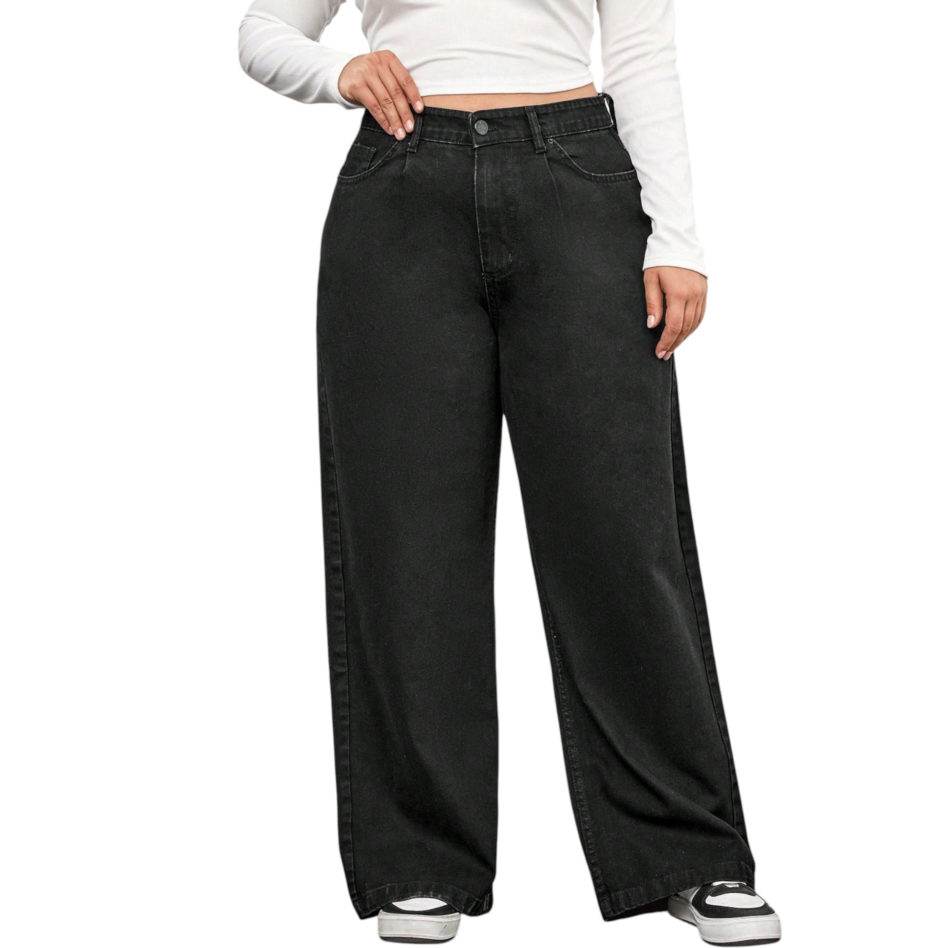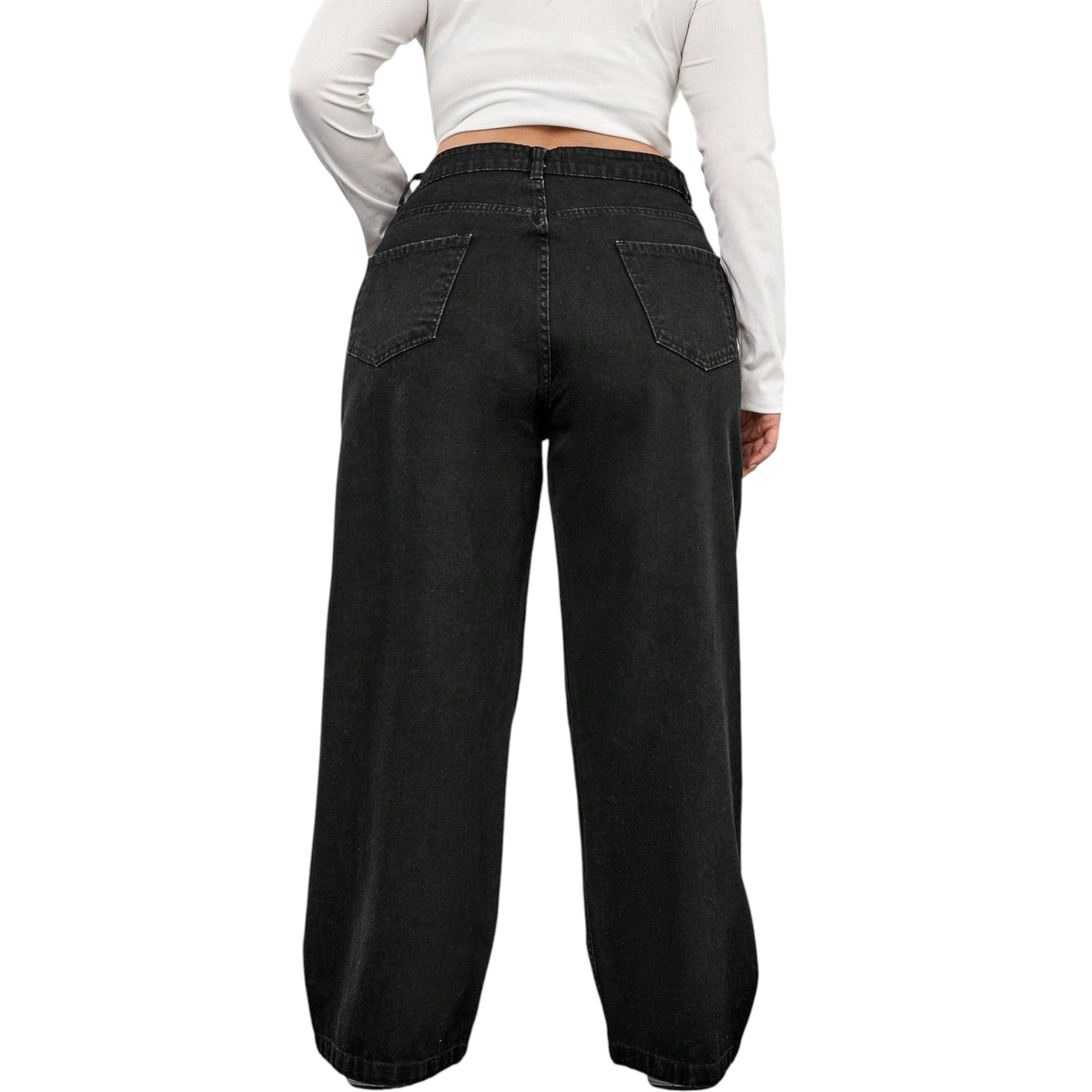 SHE fekete bő szárú farmer nadrág