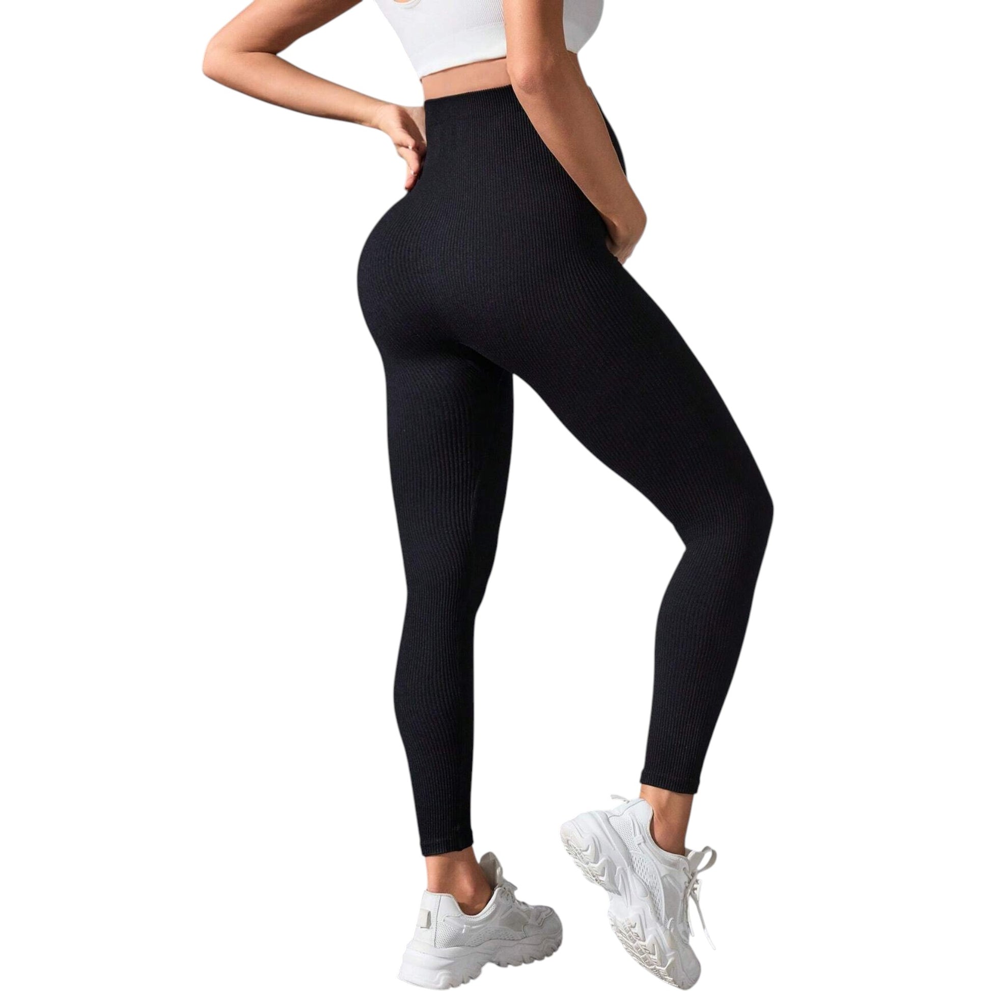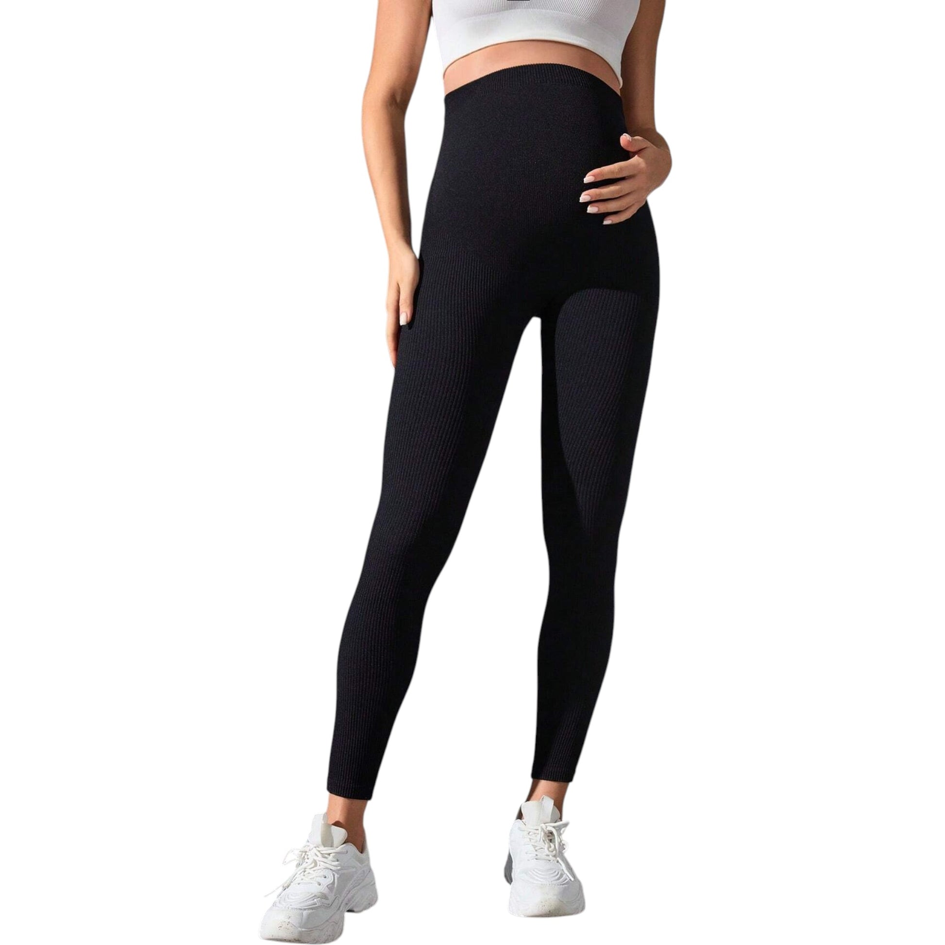Címke nélküli, fekete, magas derekú, bordázott, kismama nadrág.