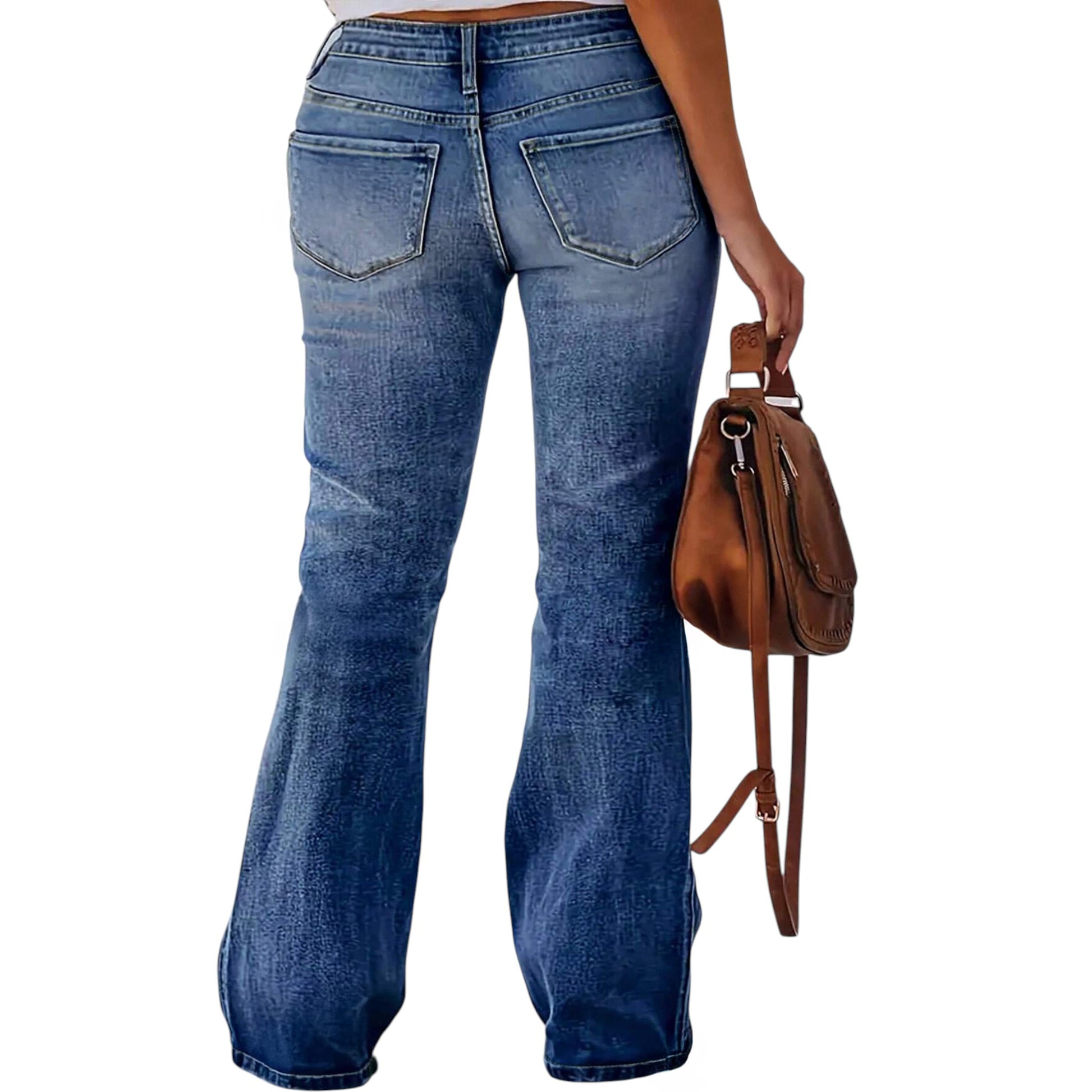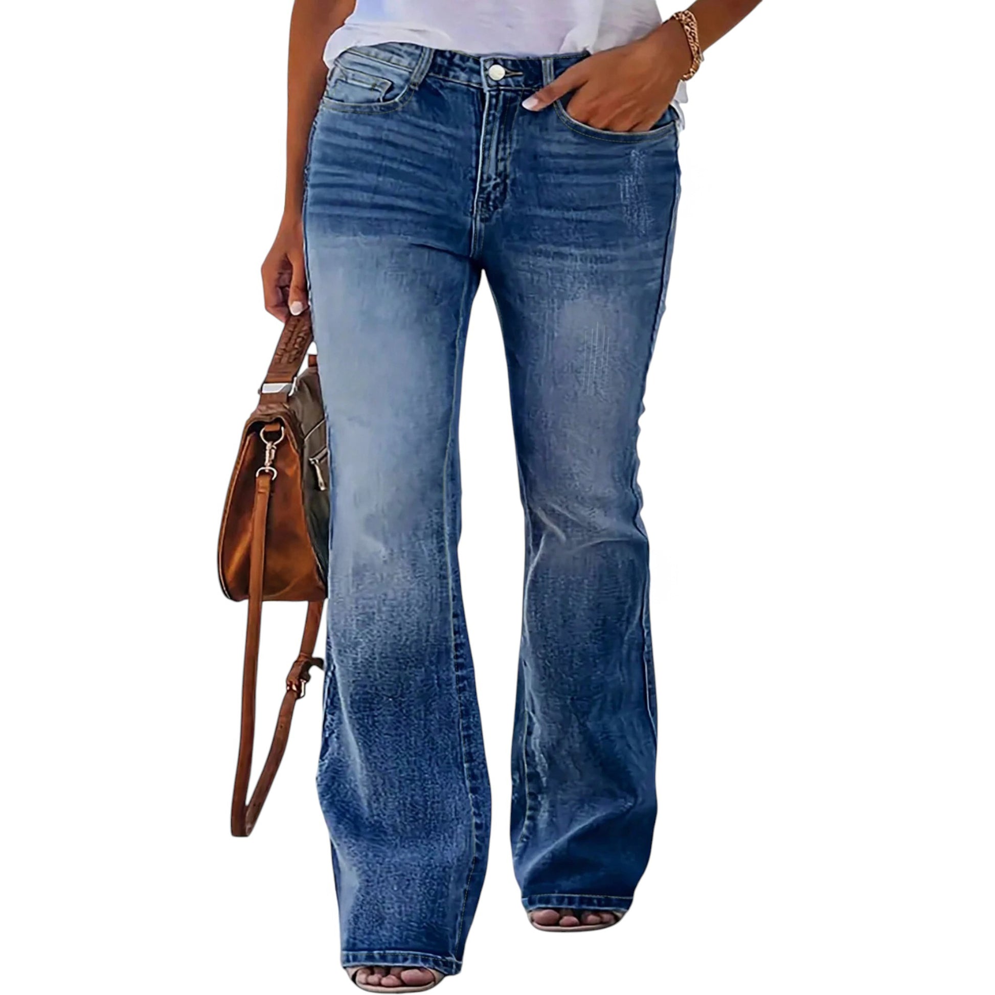 Címke nélküli, kék, trapéz szárú, flare fazonú, farmer nadrág.