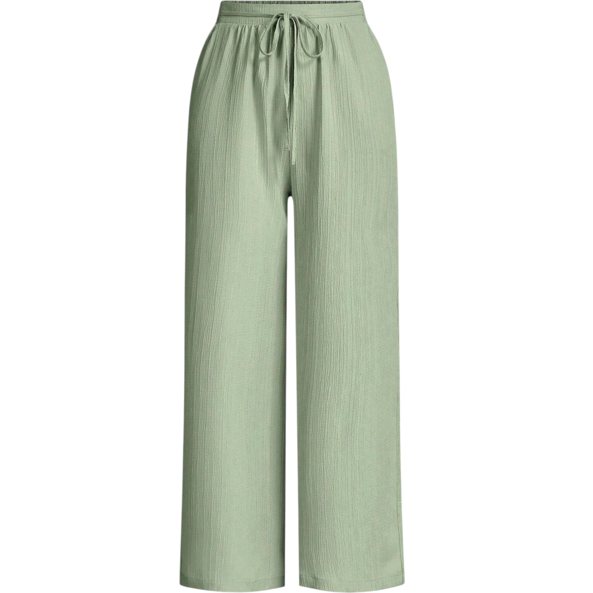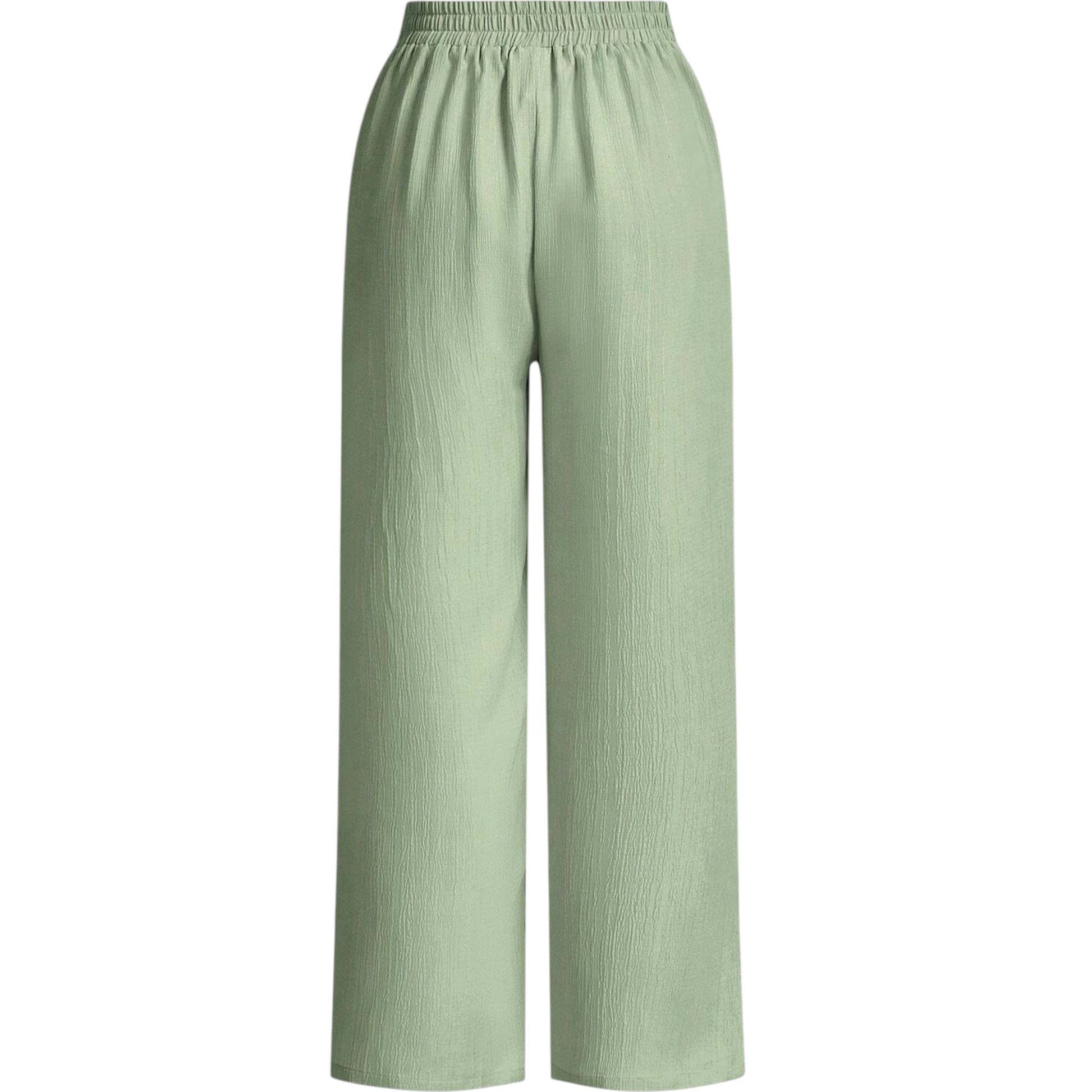 Címke nélküli, zöld, magas derekú, megkötős, pliszírozott, széles szárú nadrág.