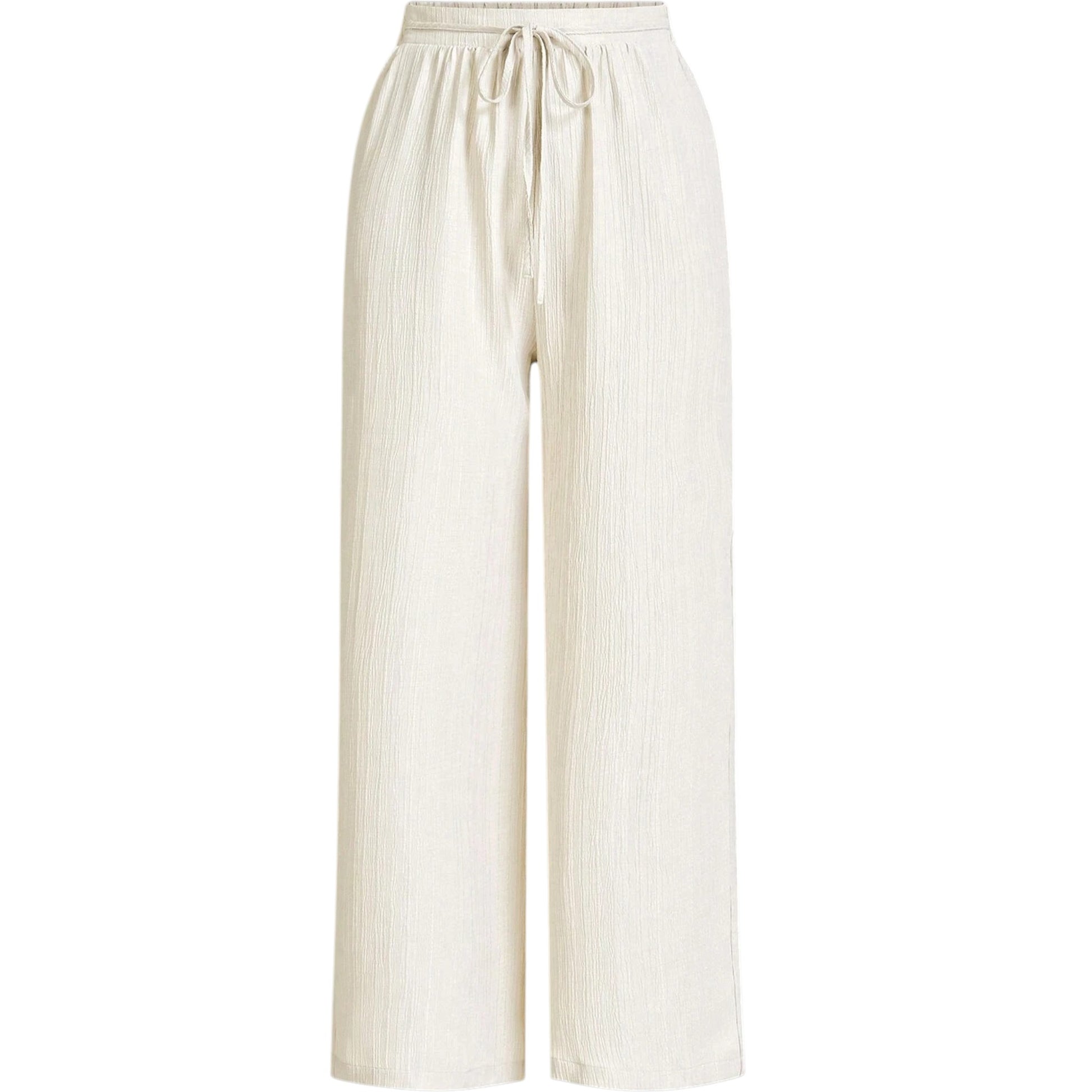 Címke nélküli, vajszínű, magas derekú, megkötős, pliszírozott, széles szárú nadrág.