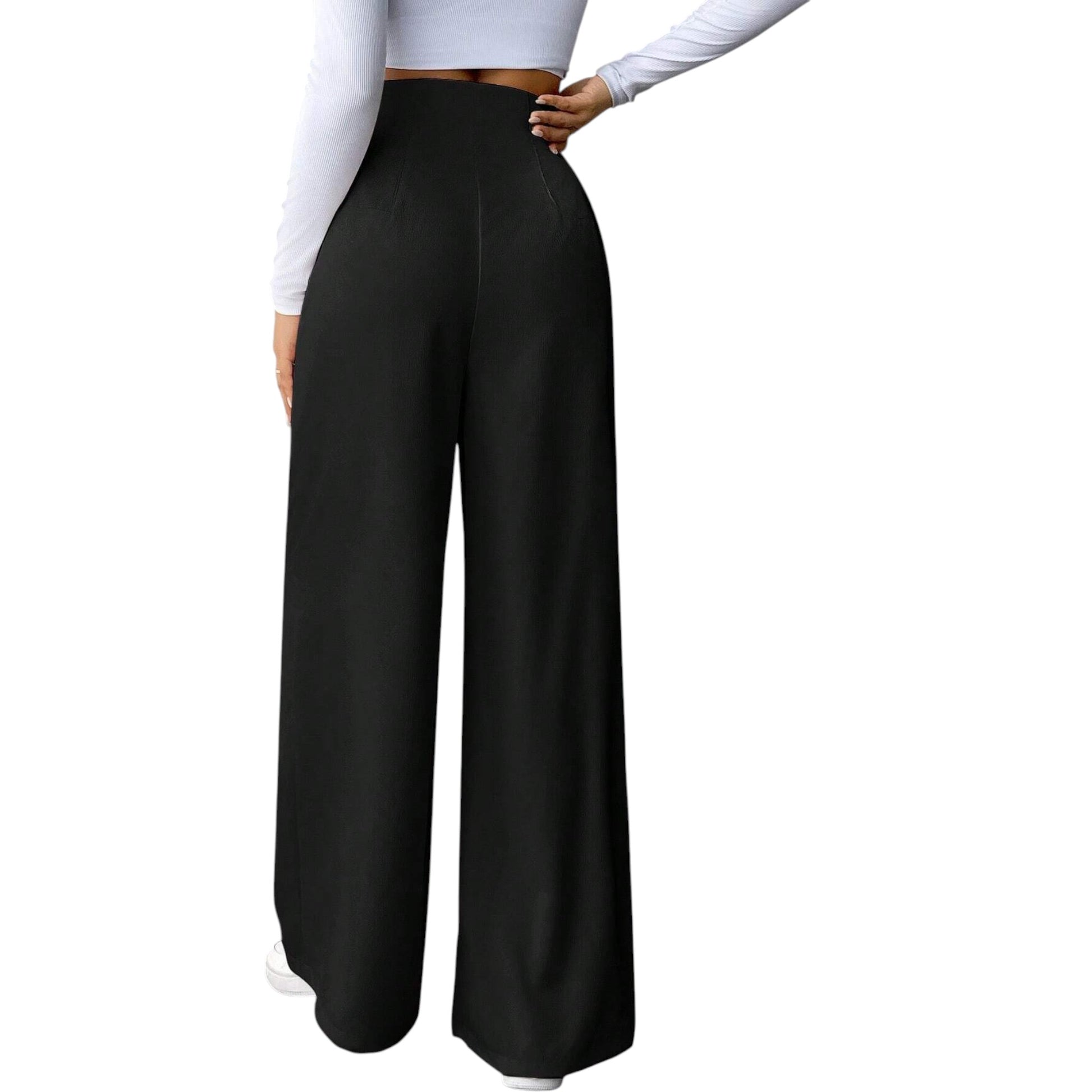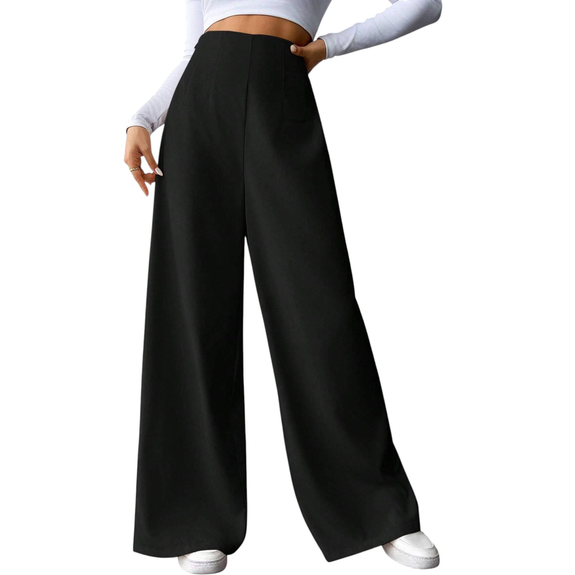 Címke nélküli, fekete, magas derekú, bő szárú nadrág.