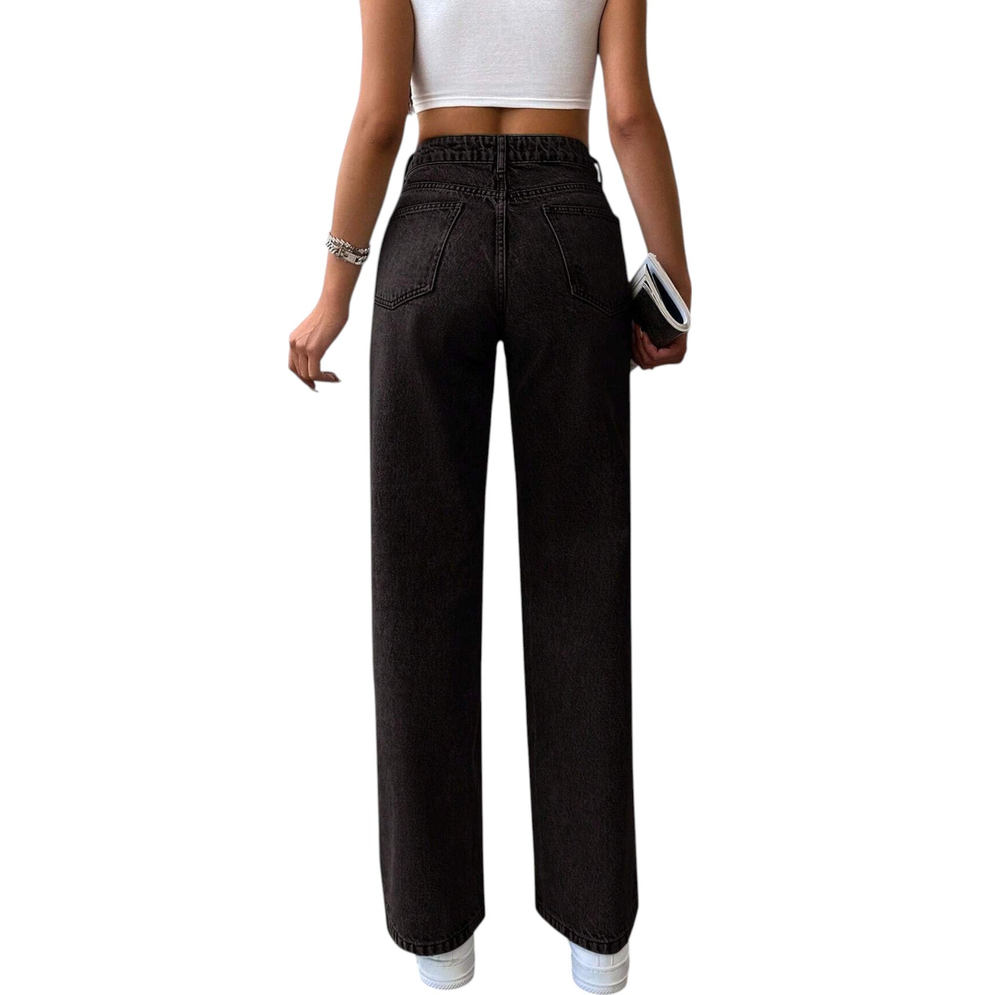 SHE fekete egyenes szárú farmer nadrág
