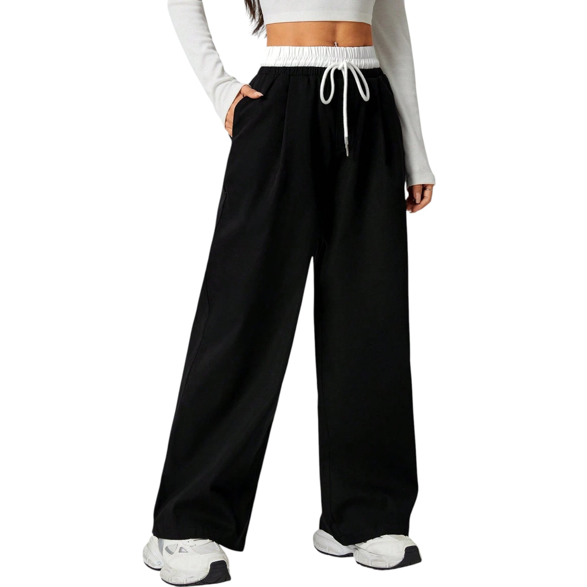 Címke nélküli, fekete, bő szárú, magas derekú, húzózsinóros és gumírozott derékrésszel, oldalsó zsebekkel.