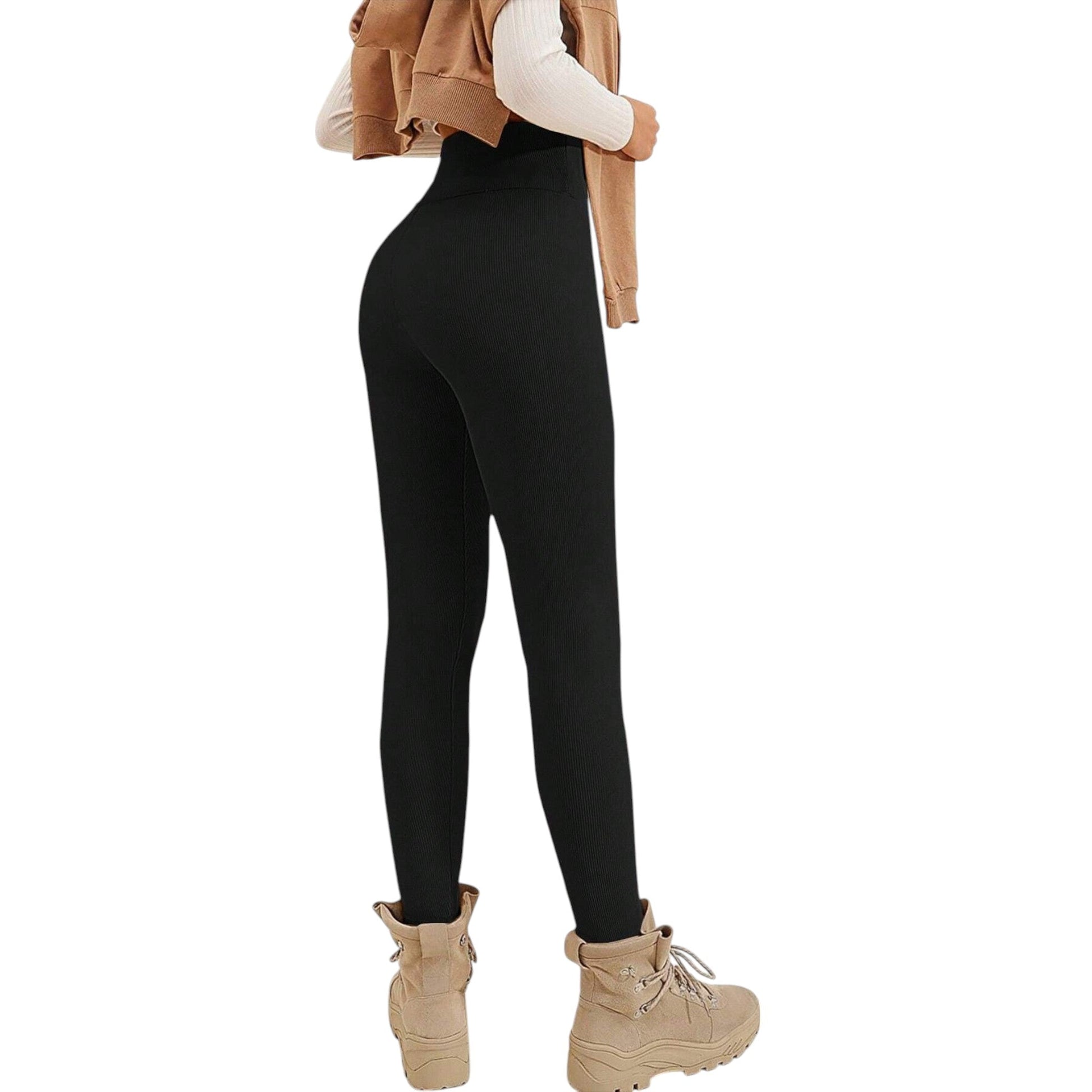Címke nélküli, fekete, magas derekú, bordázott anyagú legging.