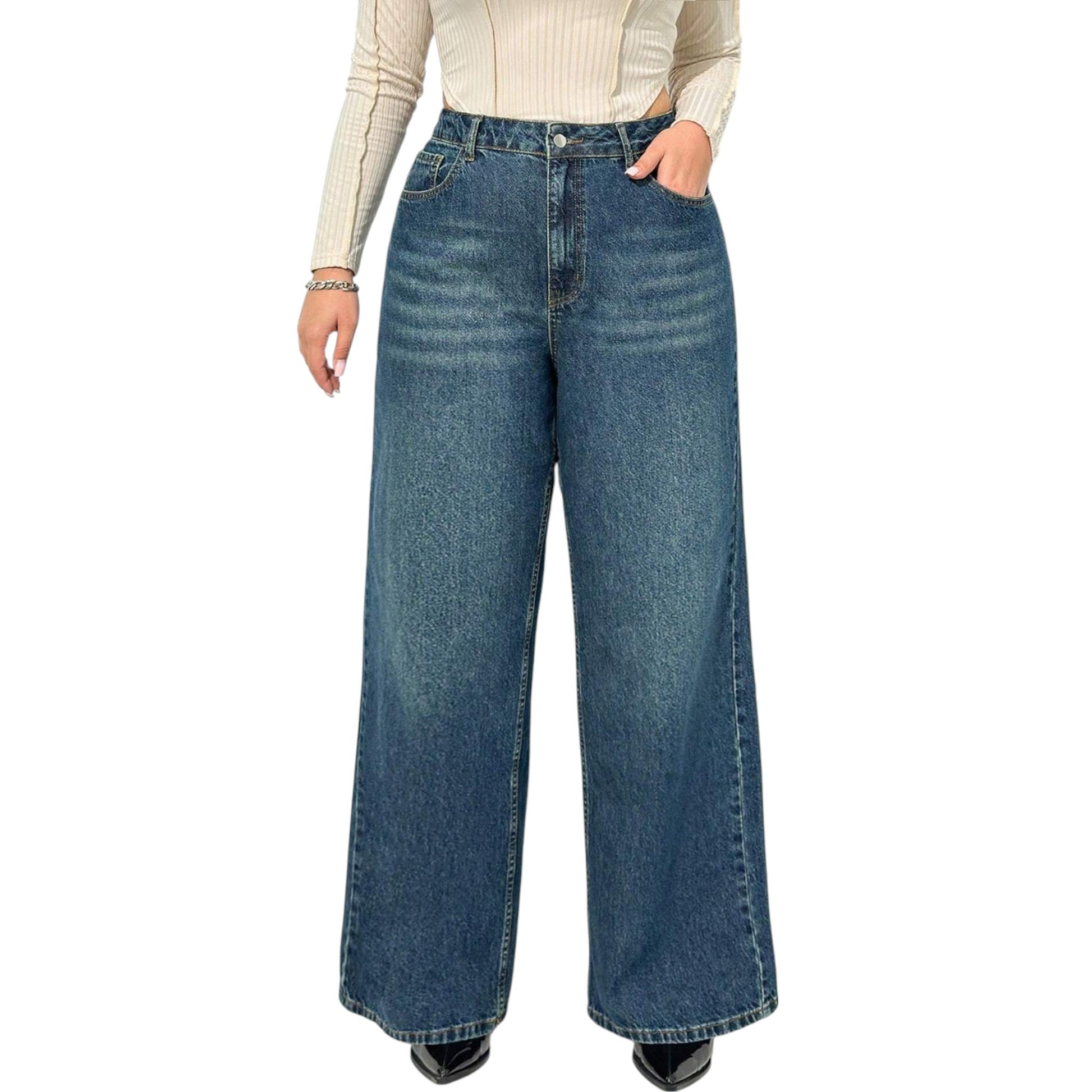 Címke nélküli, kék, magas derekú, egyenes szárú, farmer anyagú, zsebes.