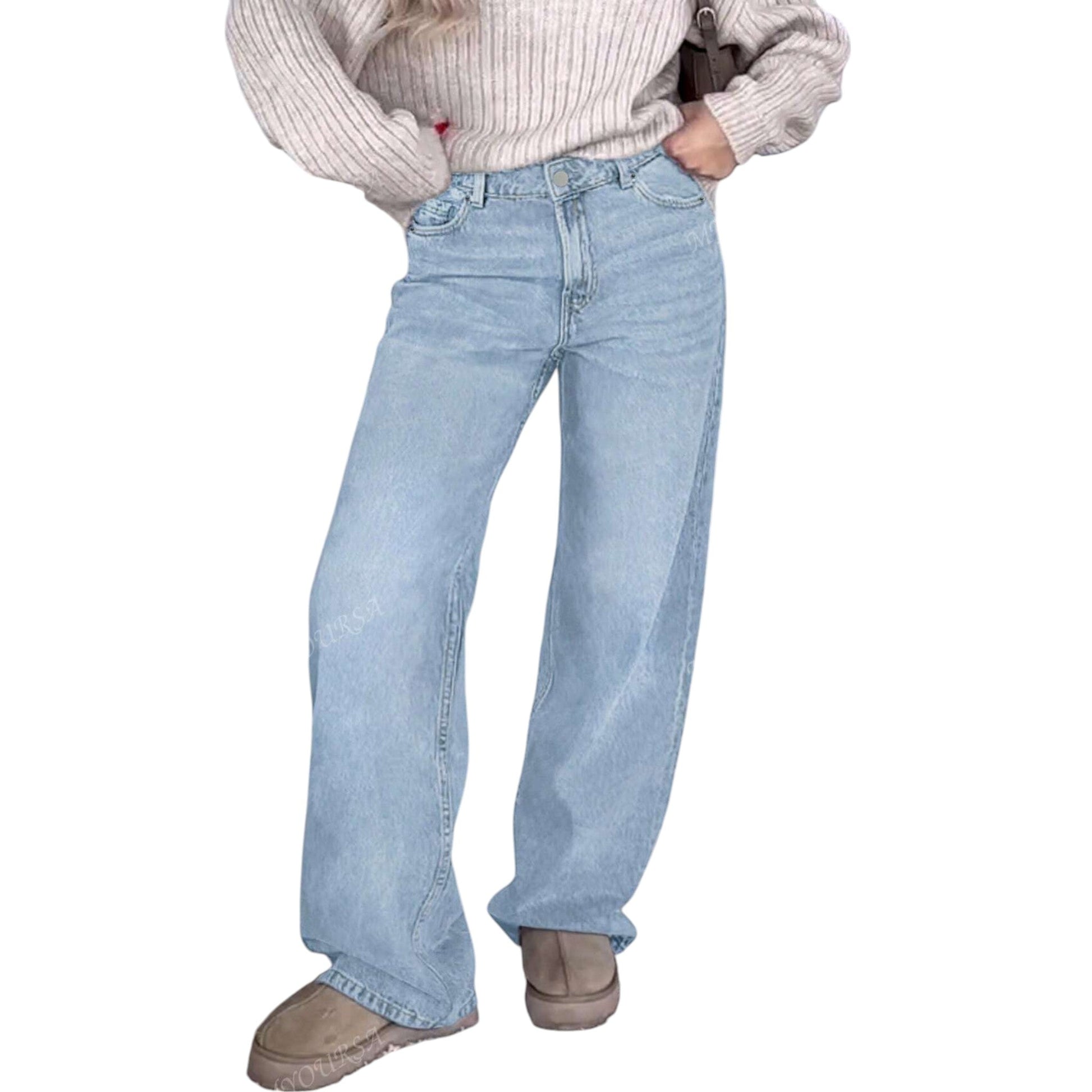 Címke nélküli, világoskék, magas derekú, baggy fazonú, farmer nadrág.