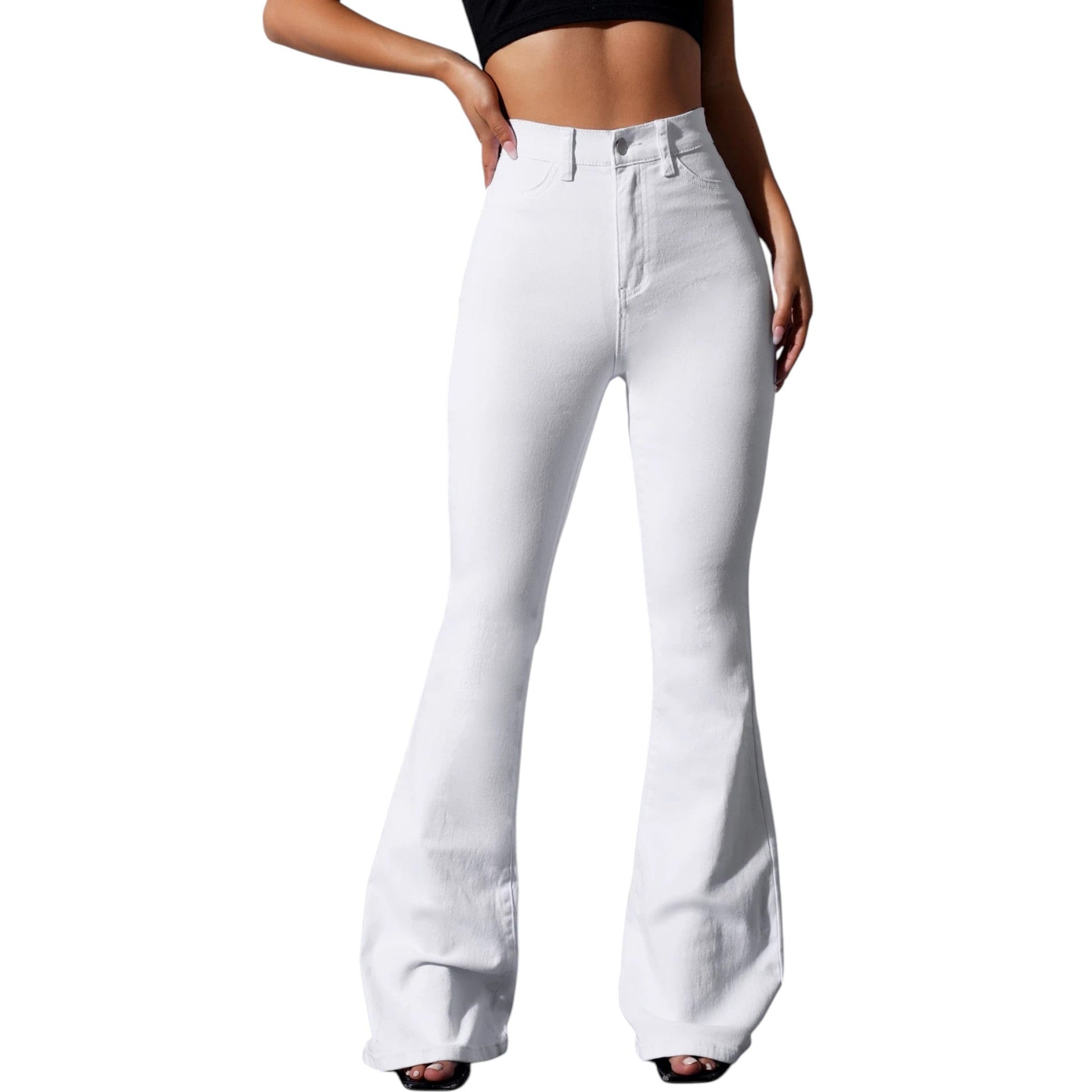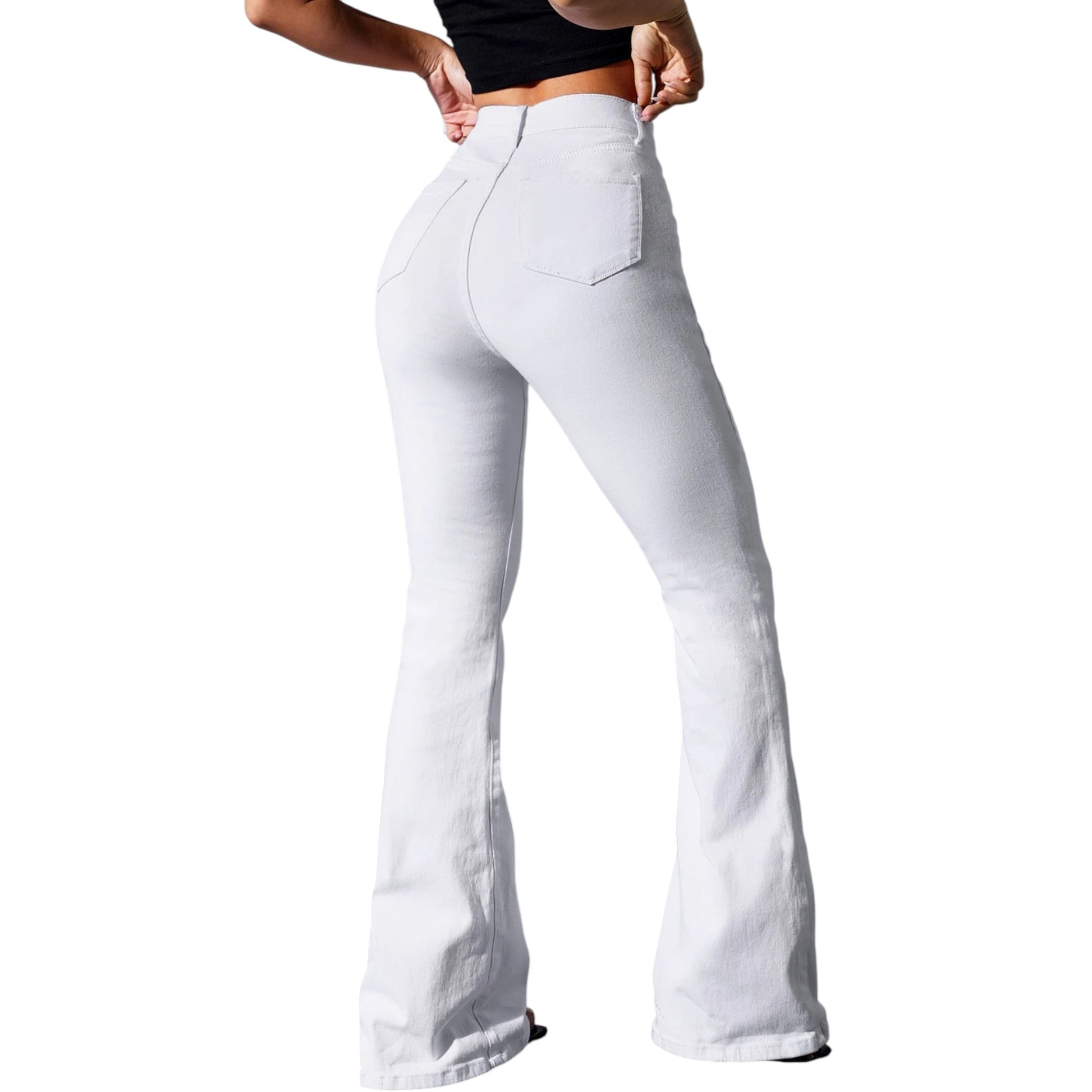 SHE fehér magas derekú trapéz szárú farmer nadrág