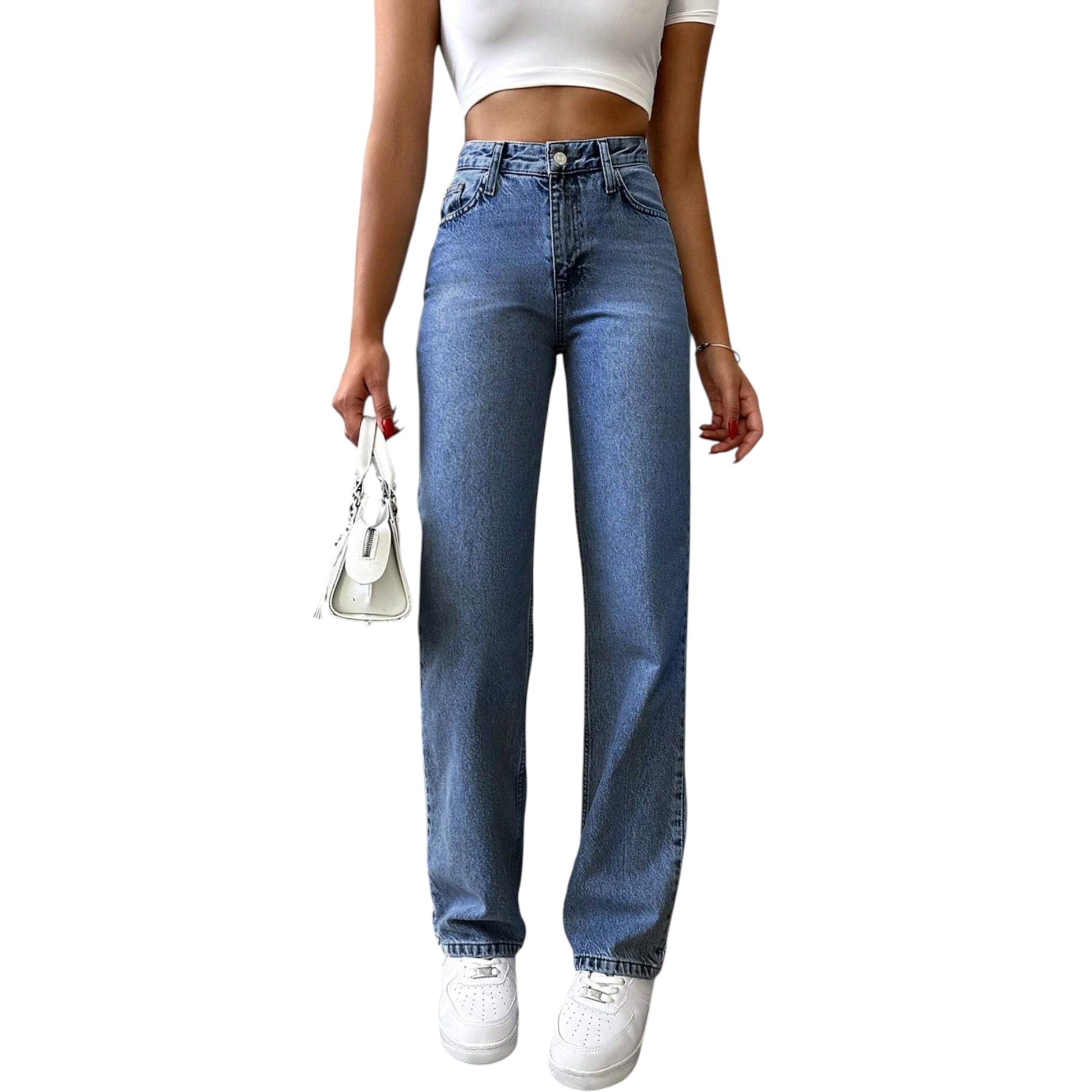SHE kék magas derekú egyenes szárú farmer nadrág