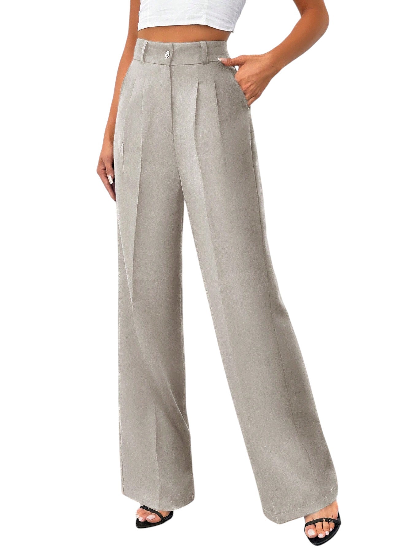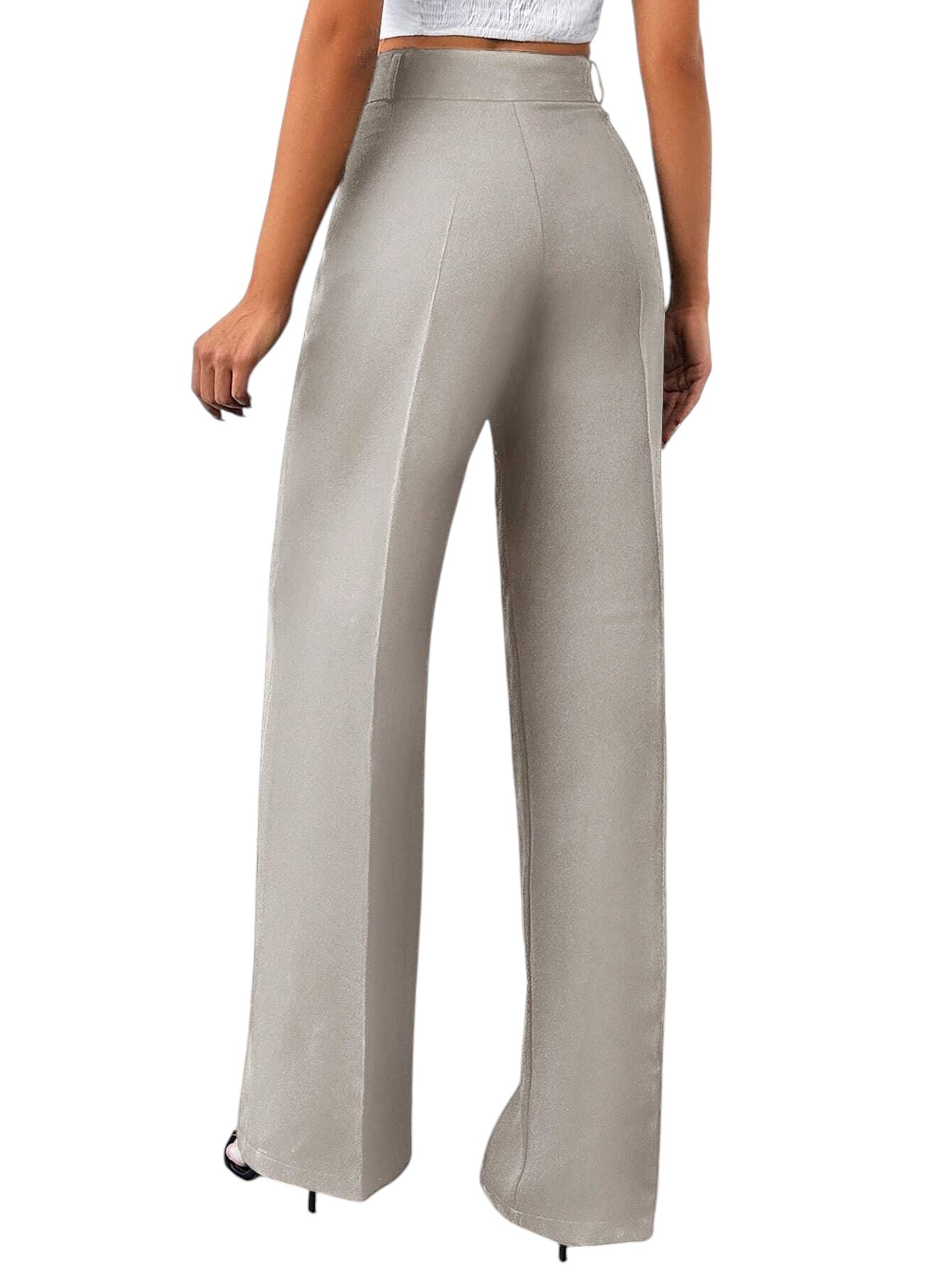 Címke nélküli, bézs, magas derekú, széles szárú, elegáns nadrág, elöl ráncolt, övbújtatóval.