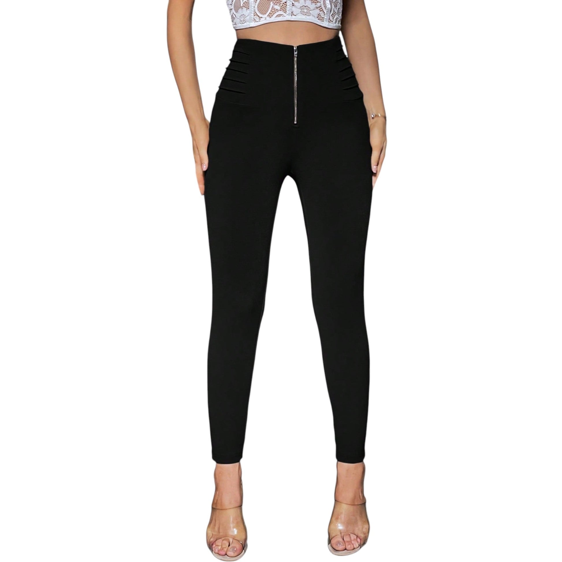 Címke nélküli, fekete, magas derekú, elől cipzáros leggings.