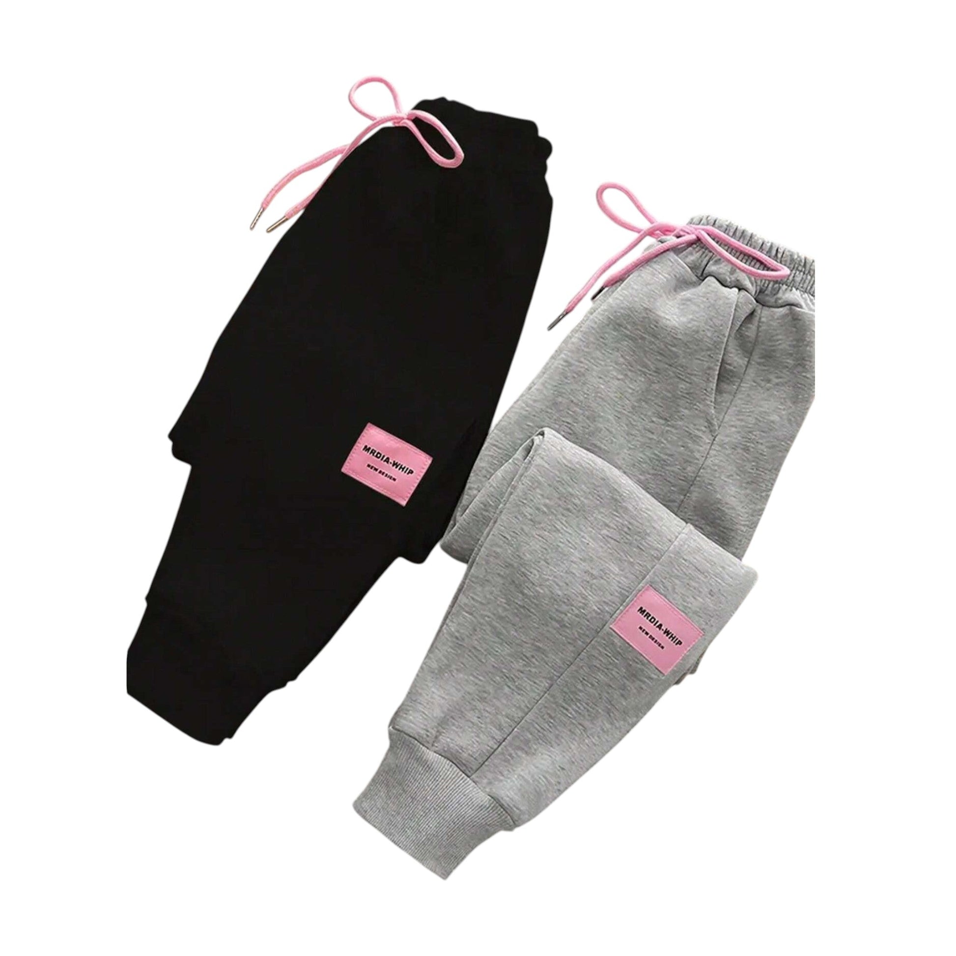 Címke nélküli, szürke, gumis derekú, megkötős, gumis bokával, polár bélésű jogger nadrágok, "MADIA-WHIP" feliratú díszítéssel.