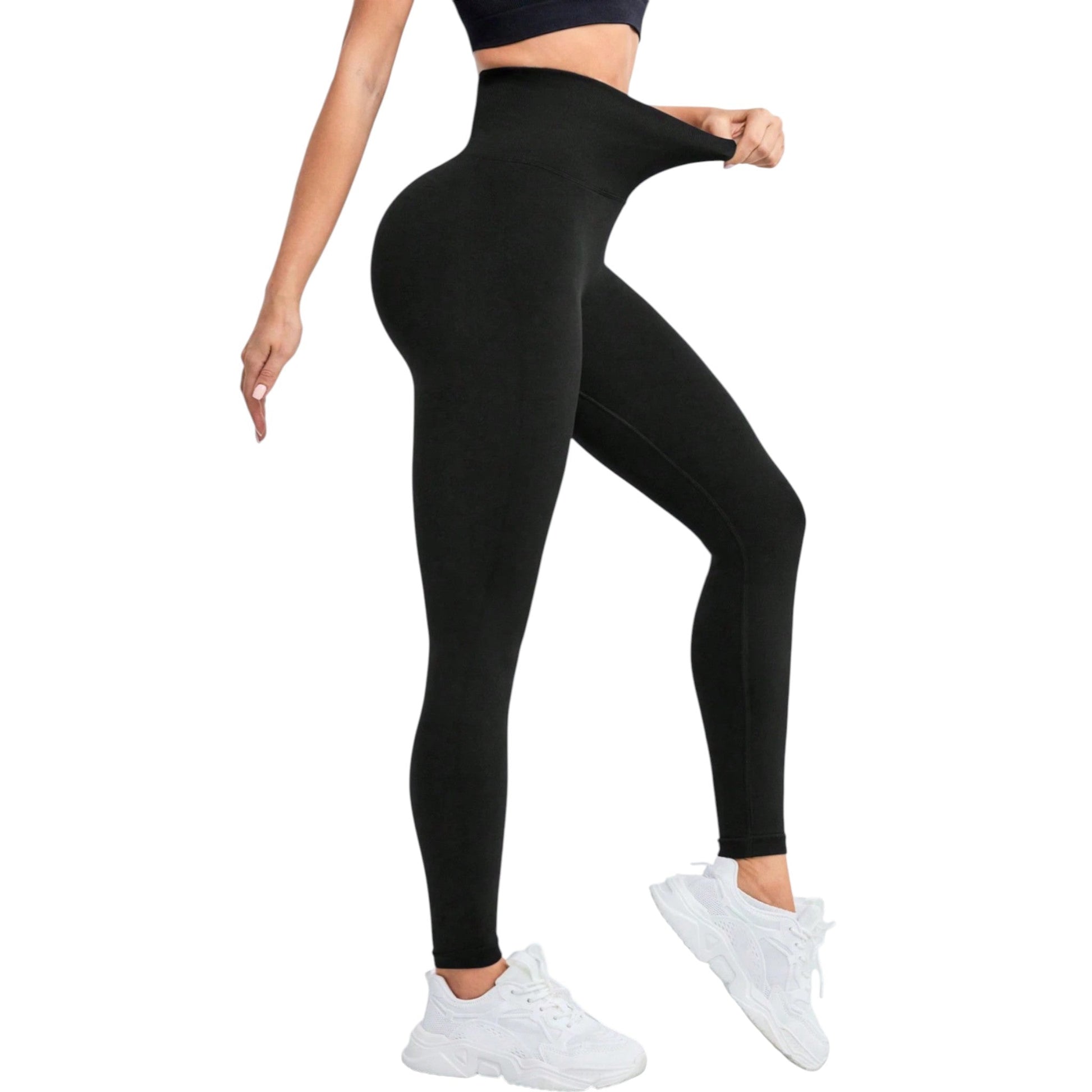 Címke nélküli, fekete, extra magas derekú leggings, sima anyagból.